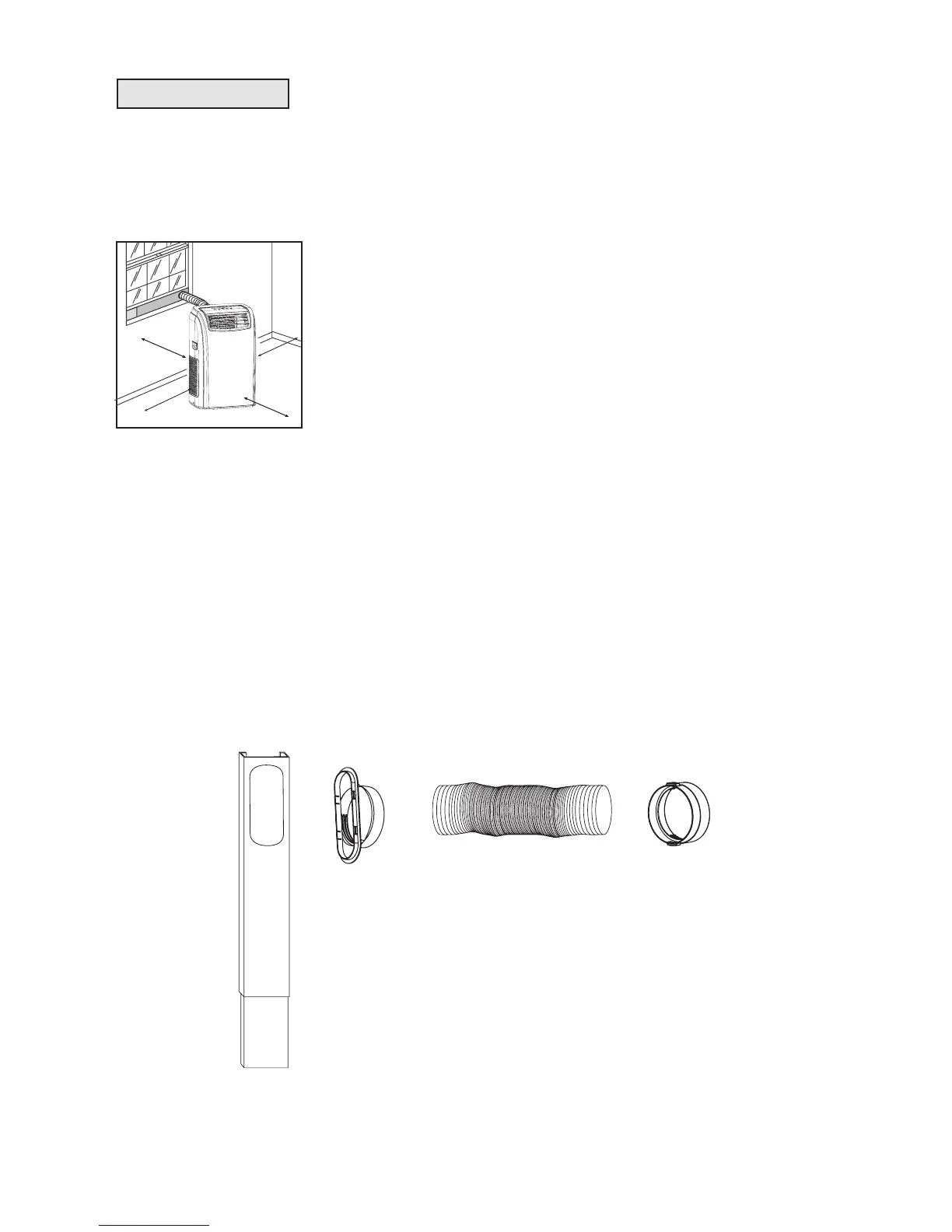 Place the portable air conditioner in a flat location where the air inlets and outlets cannot be covered up. Place