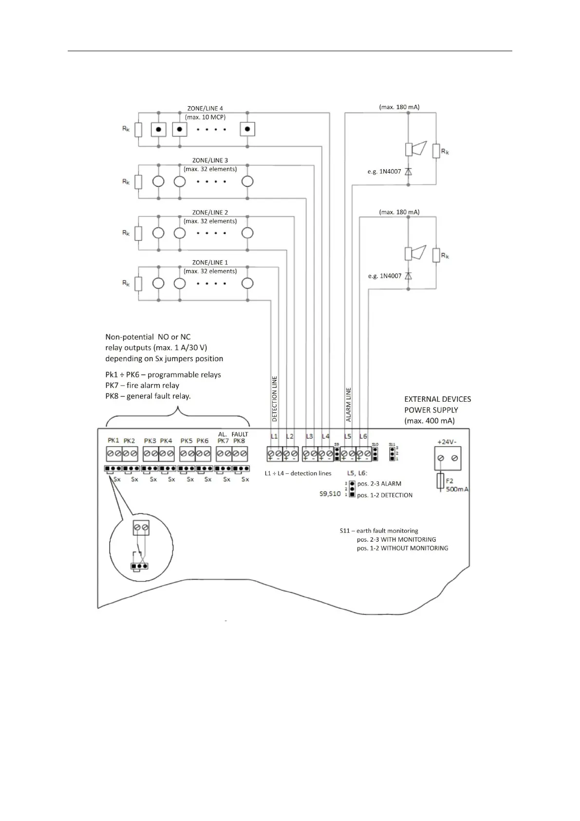 located in the casing upper part and they are intended to introduce alarm installation wires and