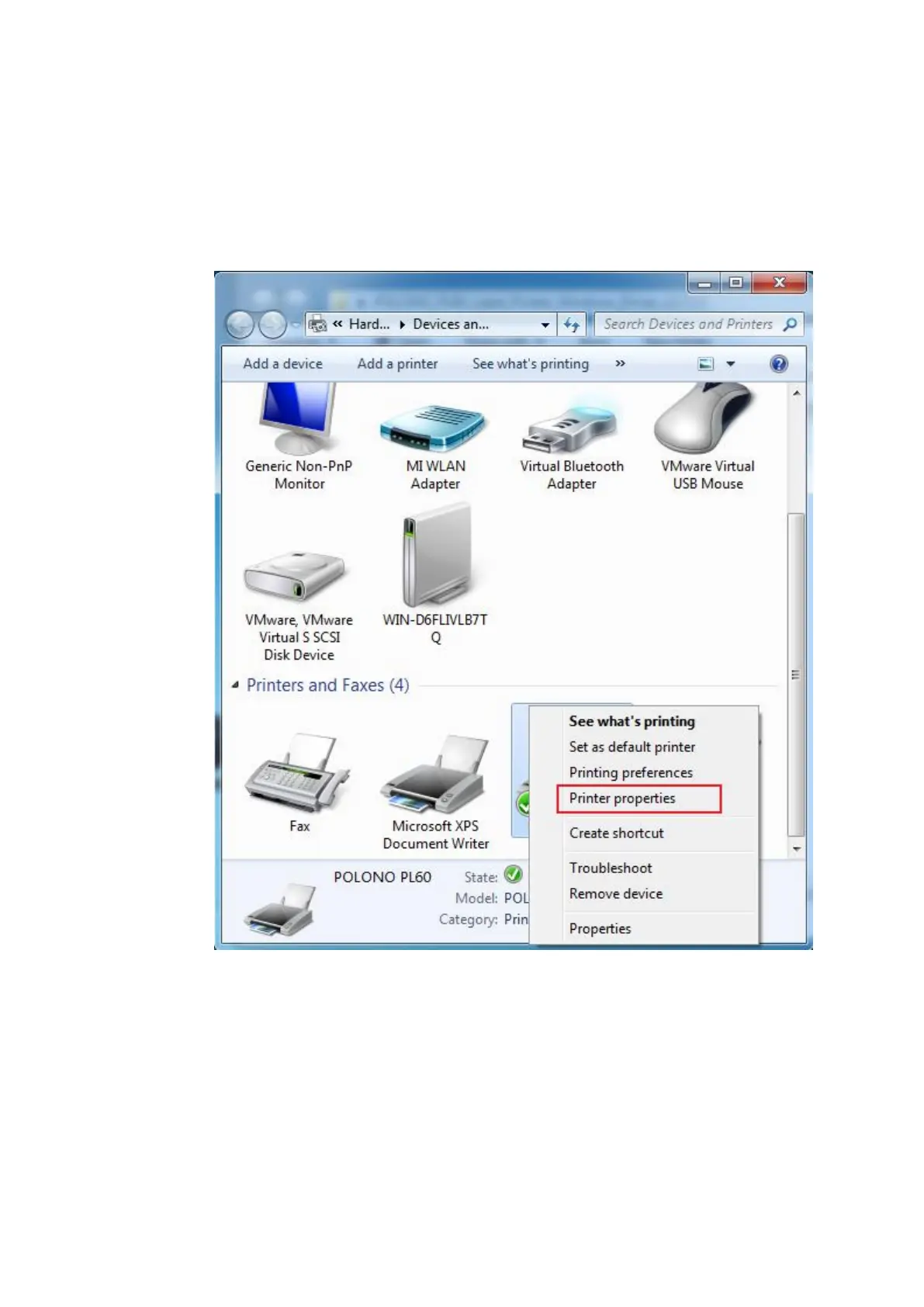 1.Click “Start “Devices and Printers”. Right click the icon and choose “Printer