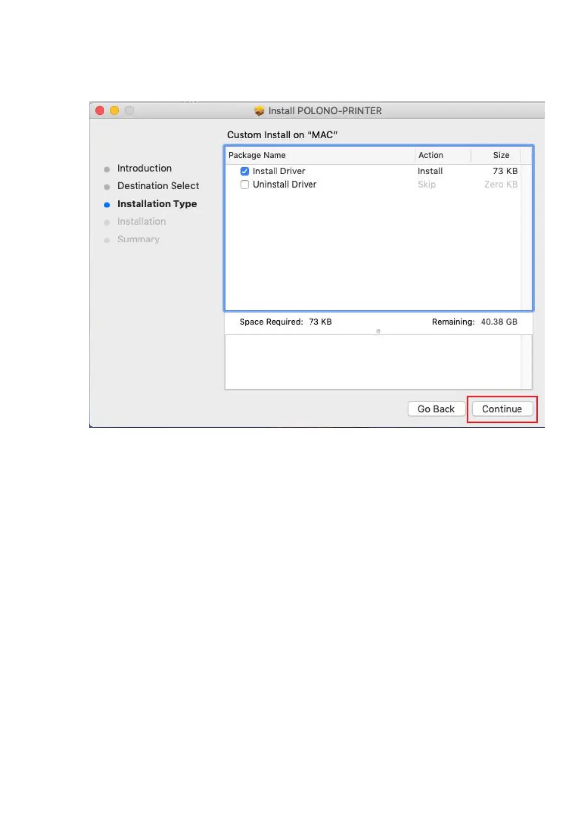 3.Choose Installation Type” and click “Continue”-> “Install”.