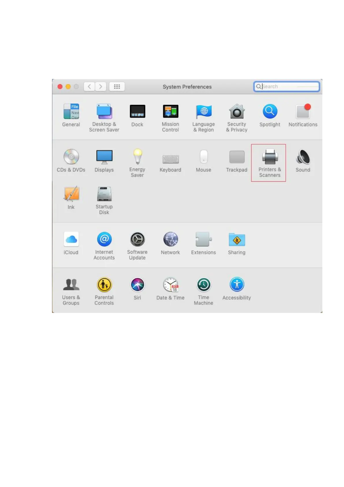 7.Click: Launchpad -> System Preferences -> Printers & Scanners.