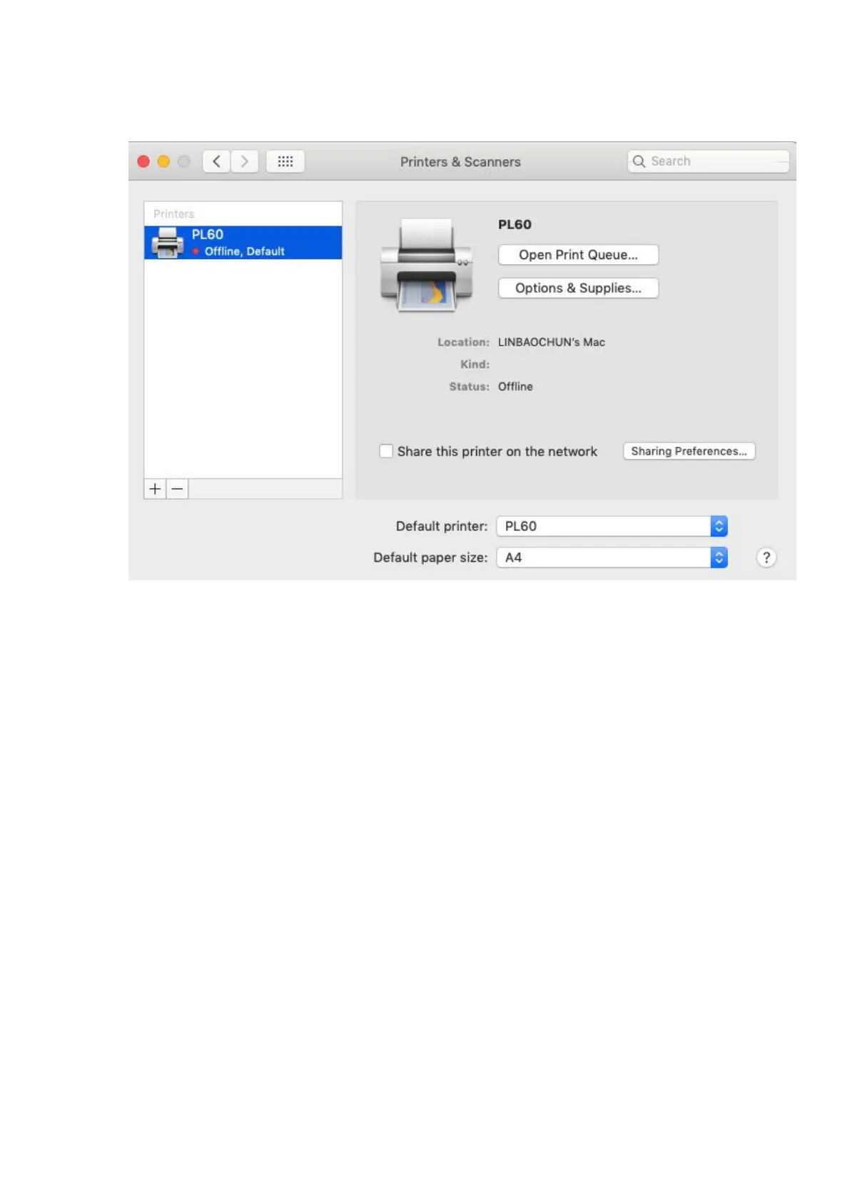 8.Under “Printer & Scanner, printer PL60 is available.