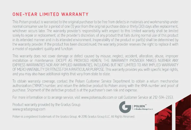 Polsen RC-77-U - One-Year Limited Warranty