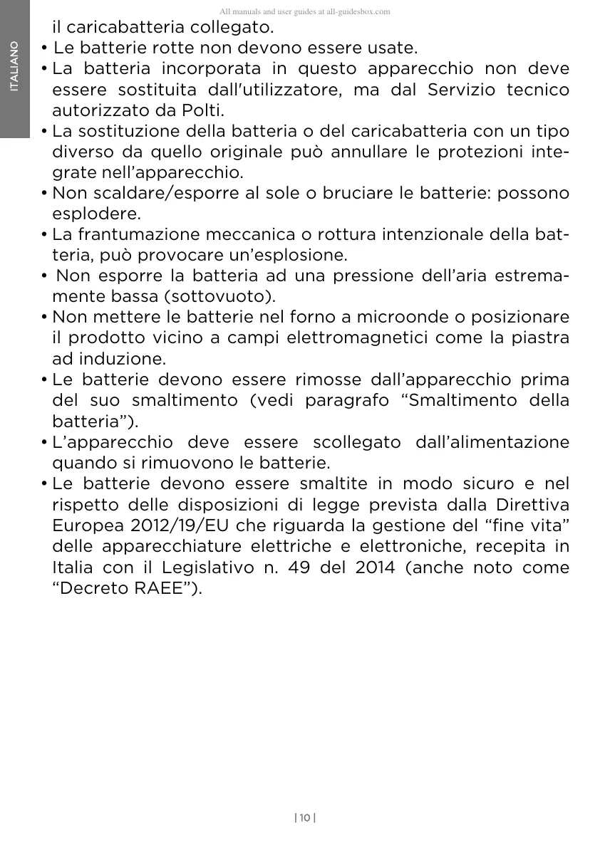 • Le batterie devono essere rimosse dall’apparecchio prima
