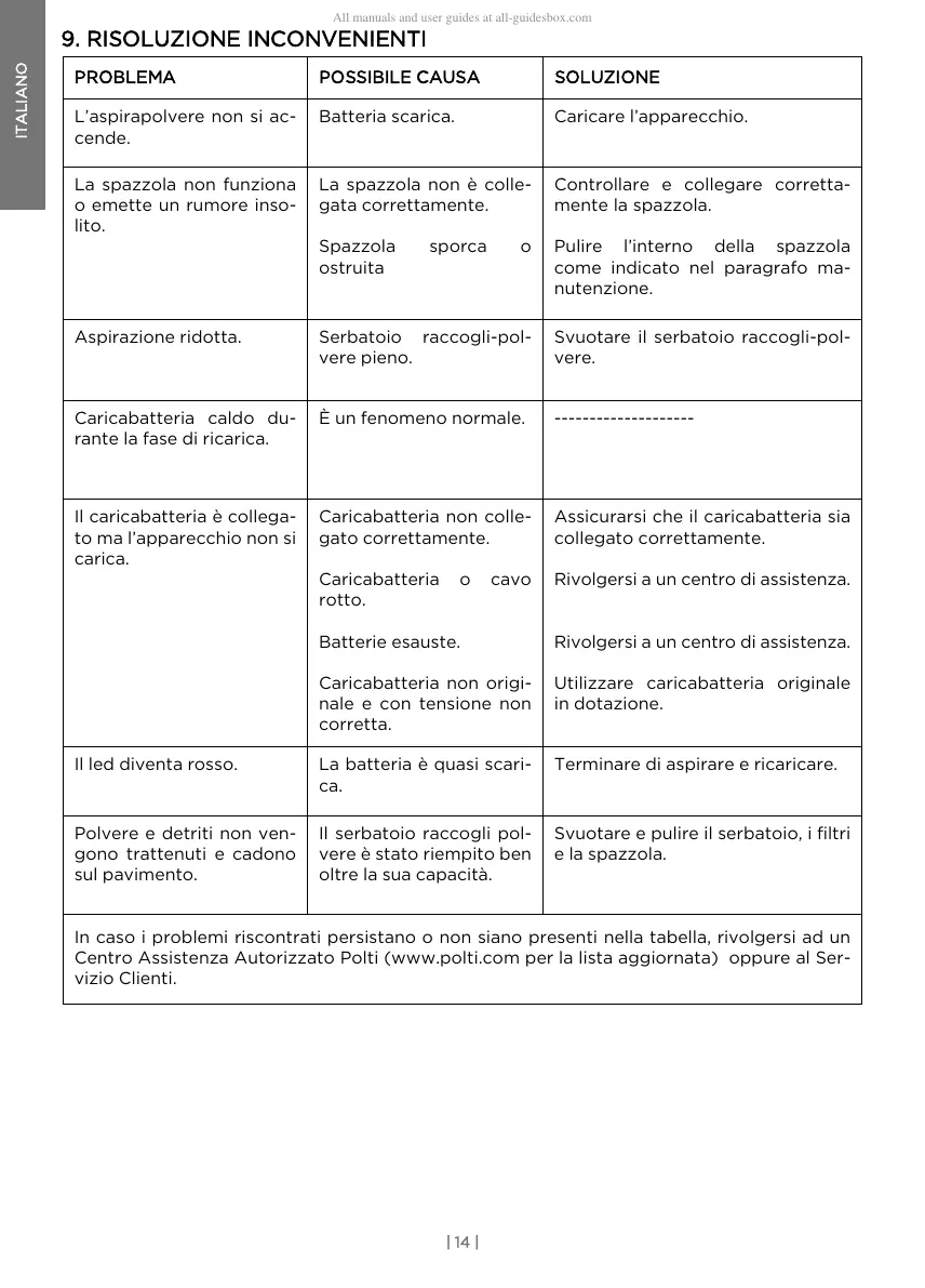 Centro Assistenza Autorizzato Polti (www.polti.com per la lista aggiornata) oppure al Ser-