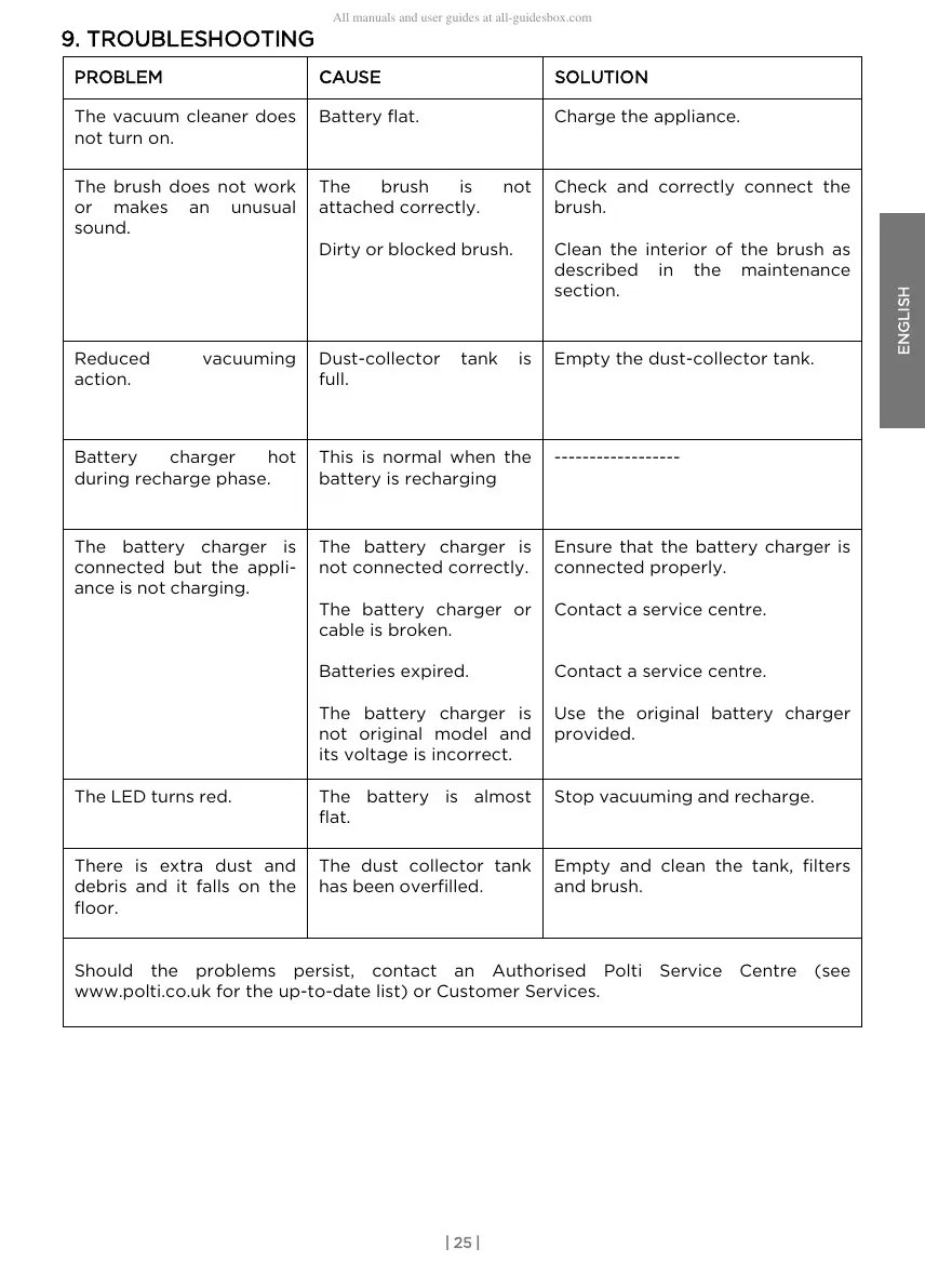 Should the problems persist, contact an Authorised Polti Service Centre (see