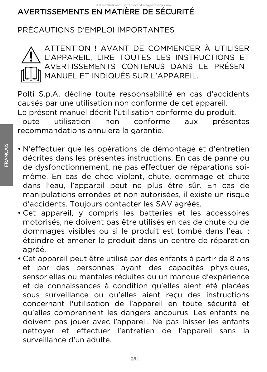 Polti S.p.A. décline toute responsabilité en cas d’accidents