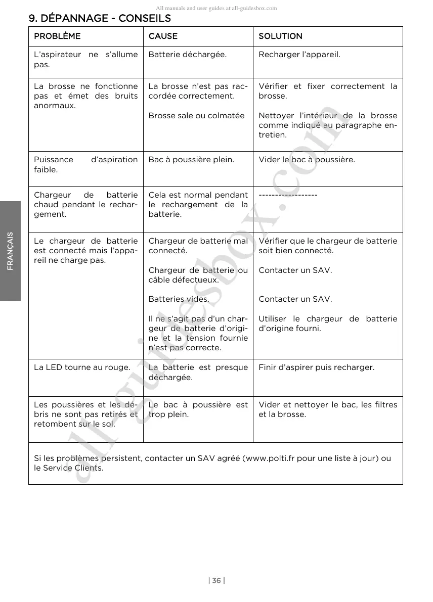 Si les problèmes persistent, contacter un SAV agréé (www.polti.fr pour une liste à jour) ou
