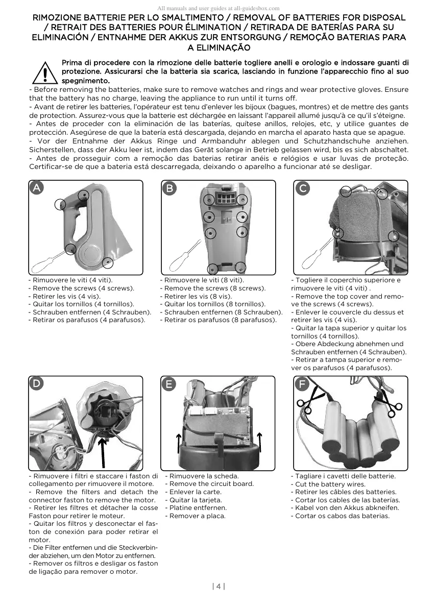 RIMOZIONE BATTERIE PER LO SMALTIMENTO / REMOVAL OF BATTERIES FOR DISPOSAL