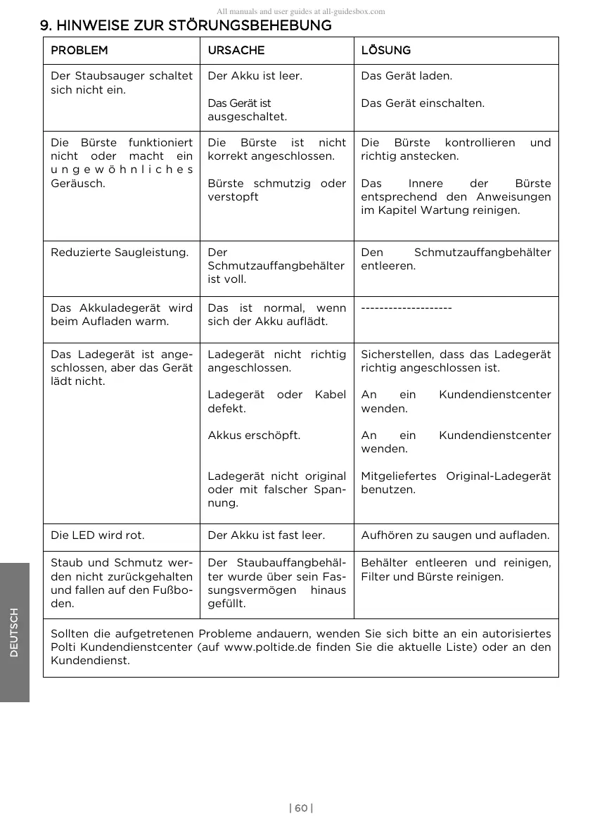 9. HINWEISE ZUR STÖRUNGSBEHEBUNG