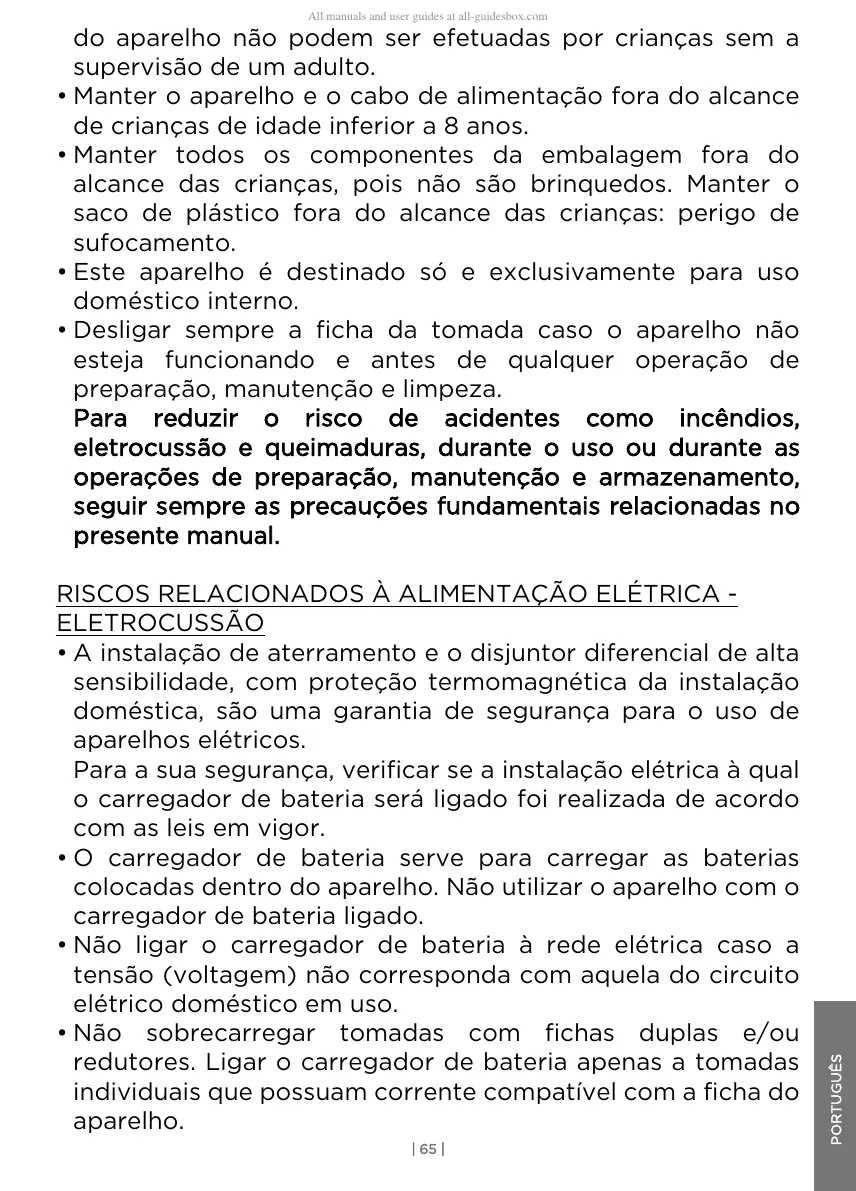 • Manter o aparelho e o cabo de alimentação fora do alcance