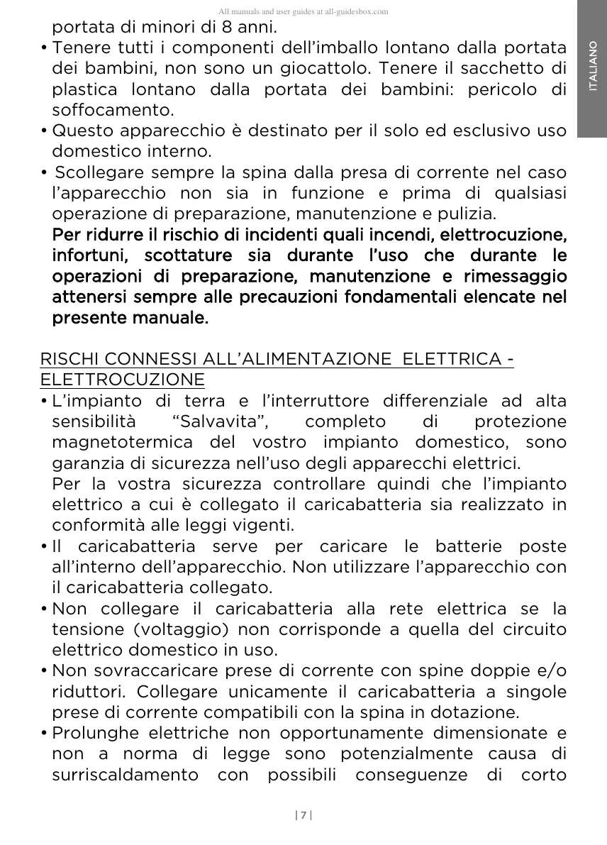 • Questo apparecchio è destinato per il solo ed esclusivo uso