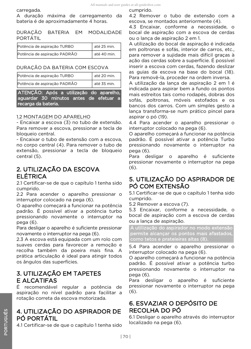 Potência de aspiração TURBO até 25 min.