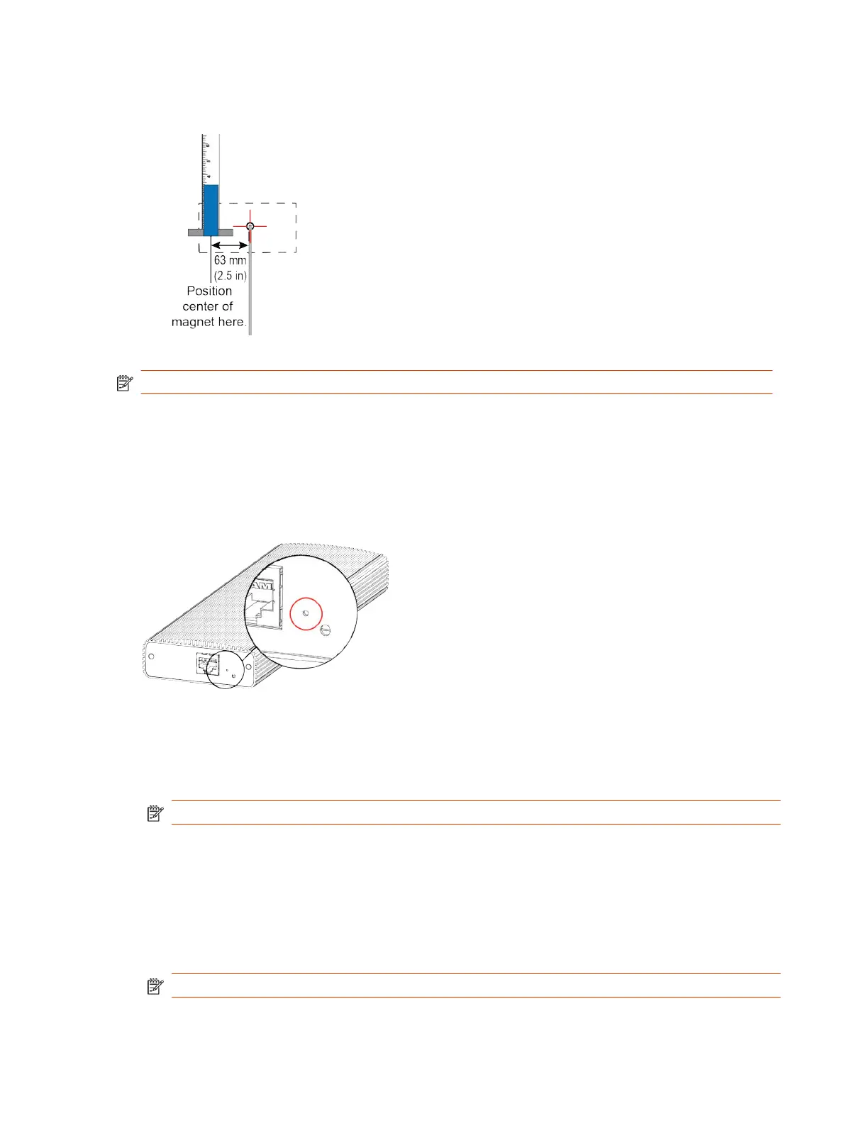 4. Line up the center of the magnet with the sensor and hold it no more than 19 mm (3/4 in.) away