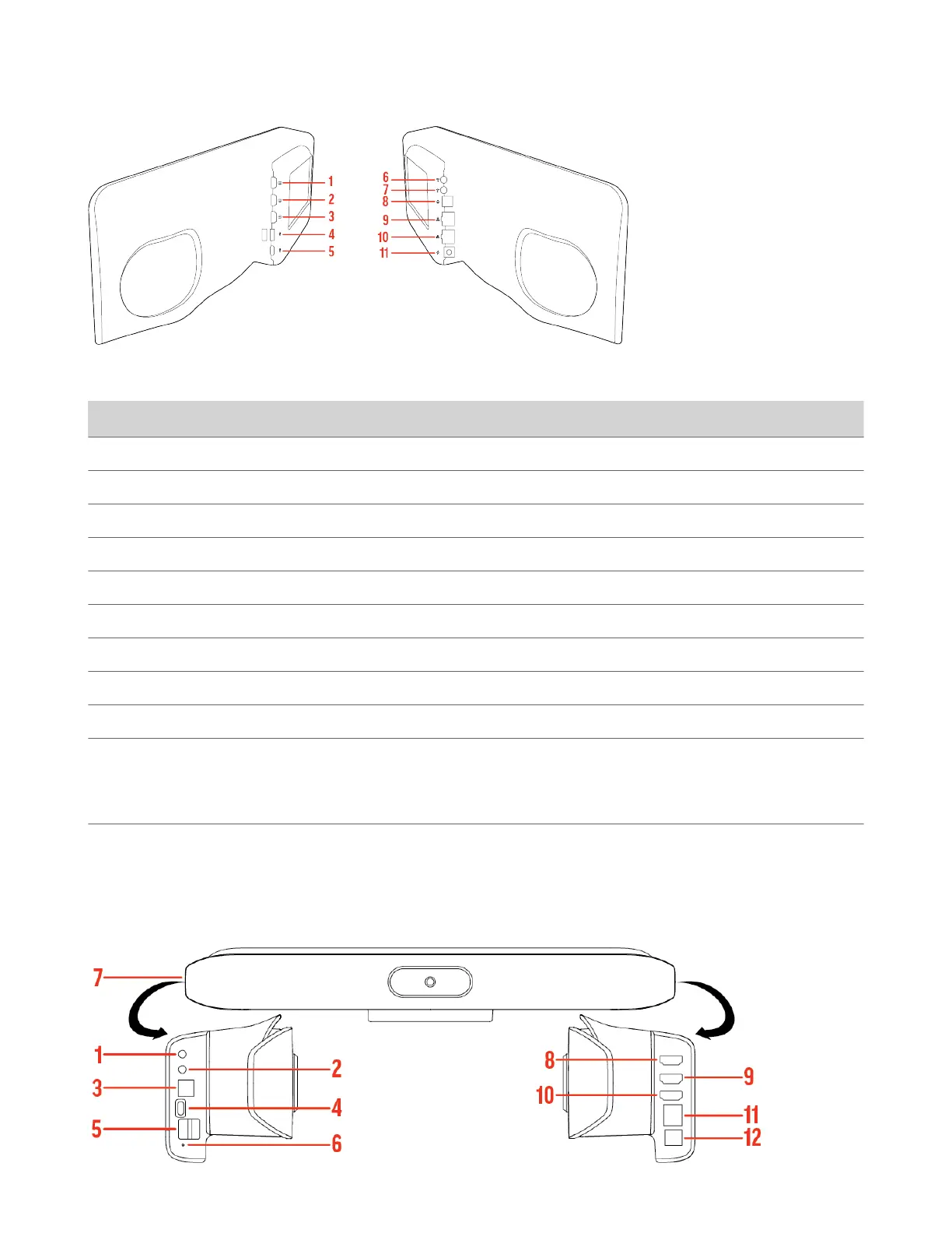 The following illustration and table explain the ports on your Poly Studio X50 system.