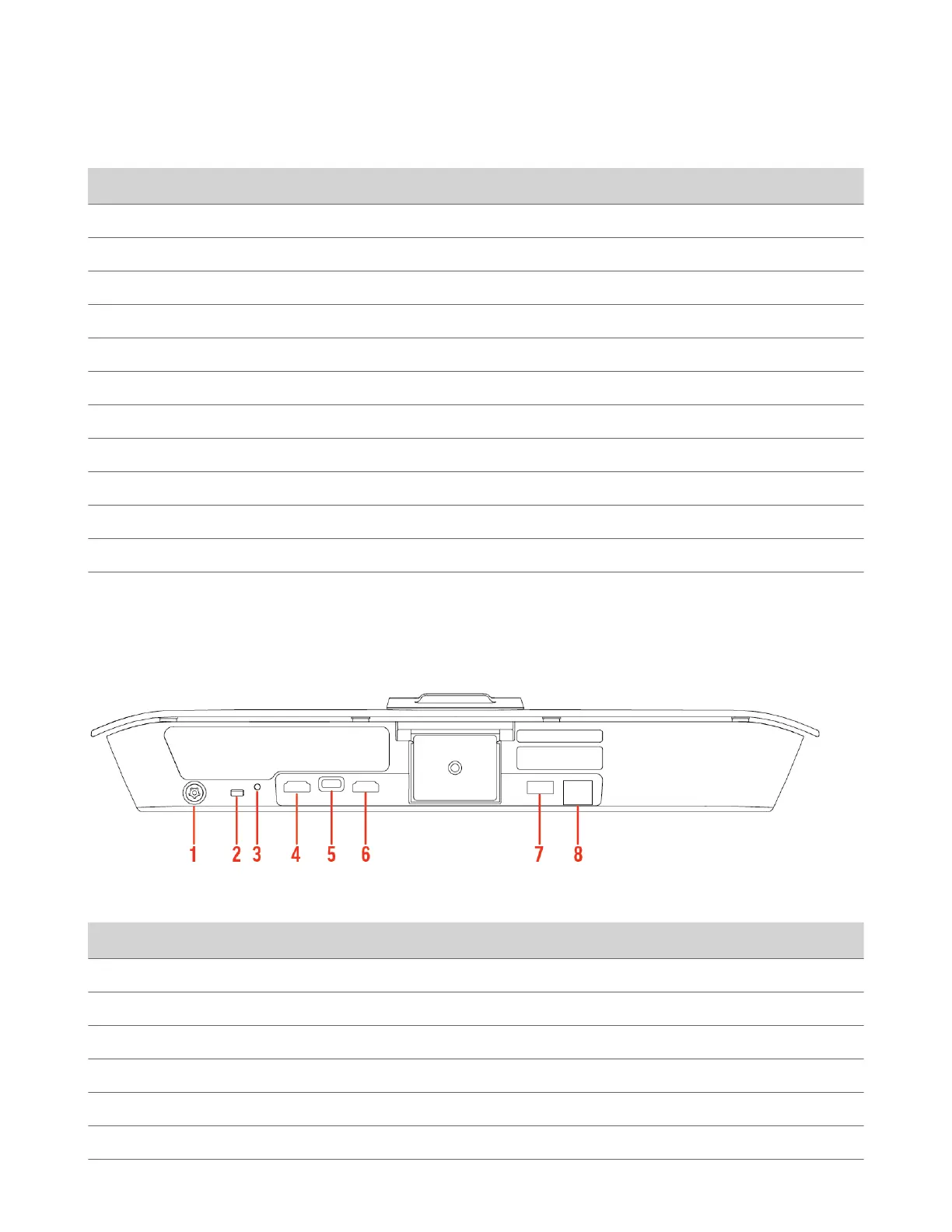 The following illustration and table explain the ports on your Poly Studio X30 system.