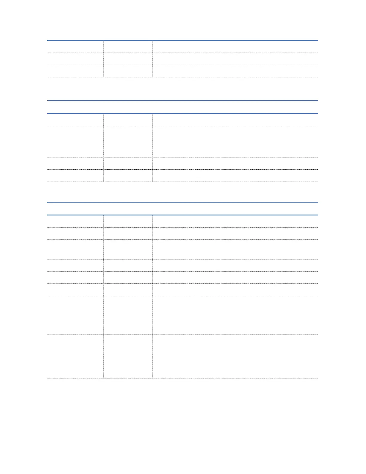 In the below table the action of the button press is presented.
