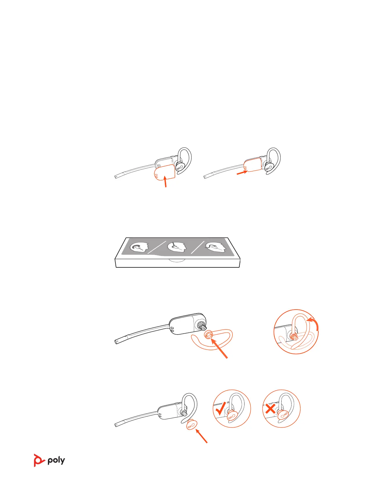 Choose a headset wearing style and use the fit kit to assemble it over-the-ear, over-the-
