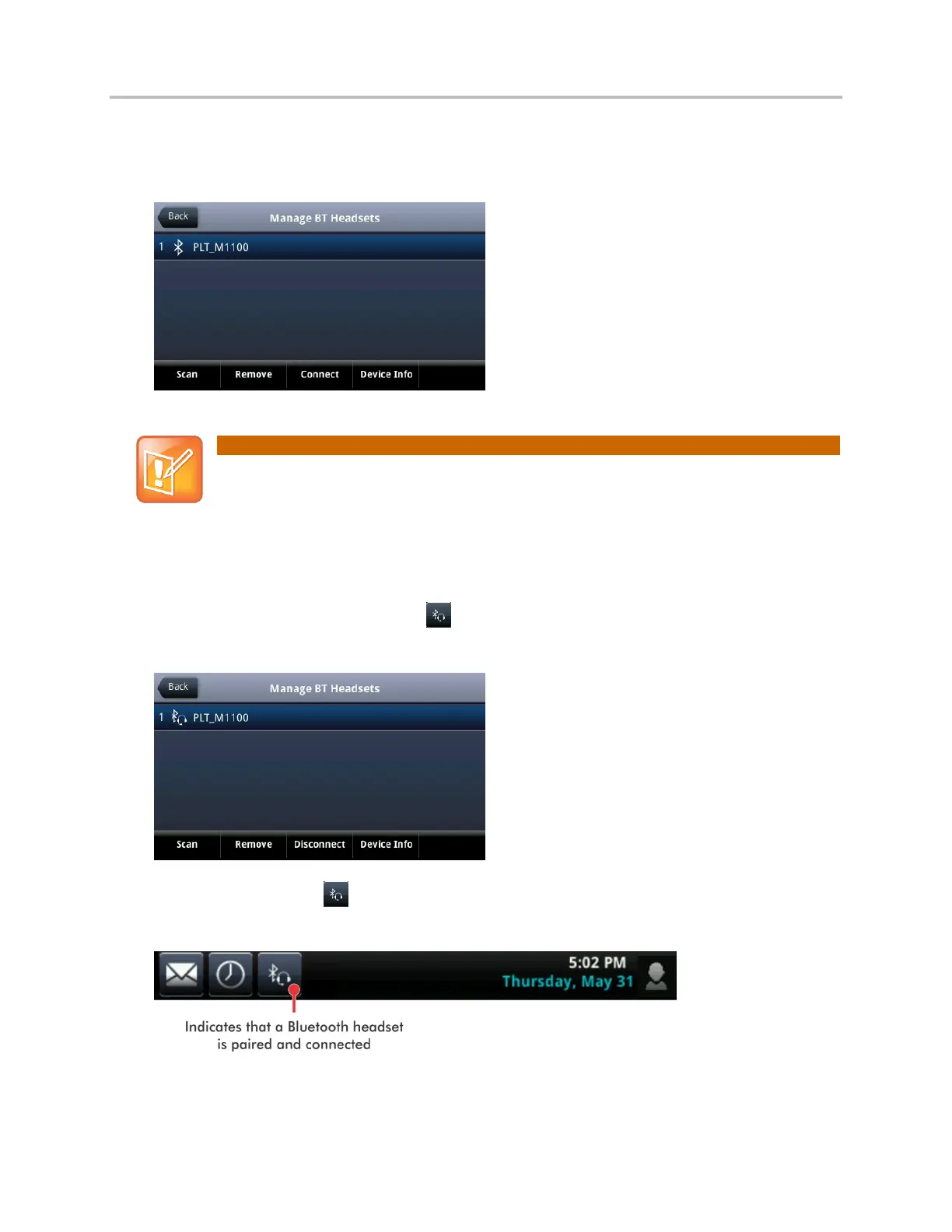 message displays. After your headset is added, the Manage BT Headsets screen displays. Your