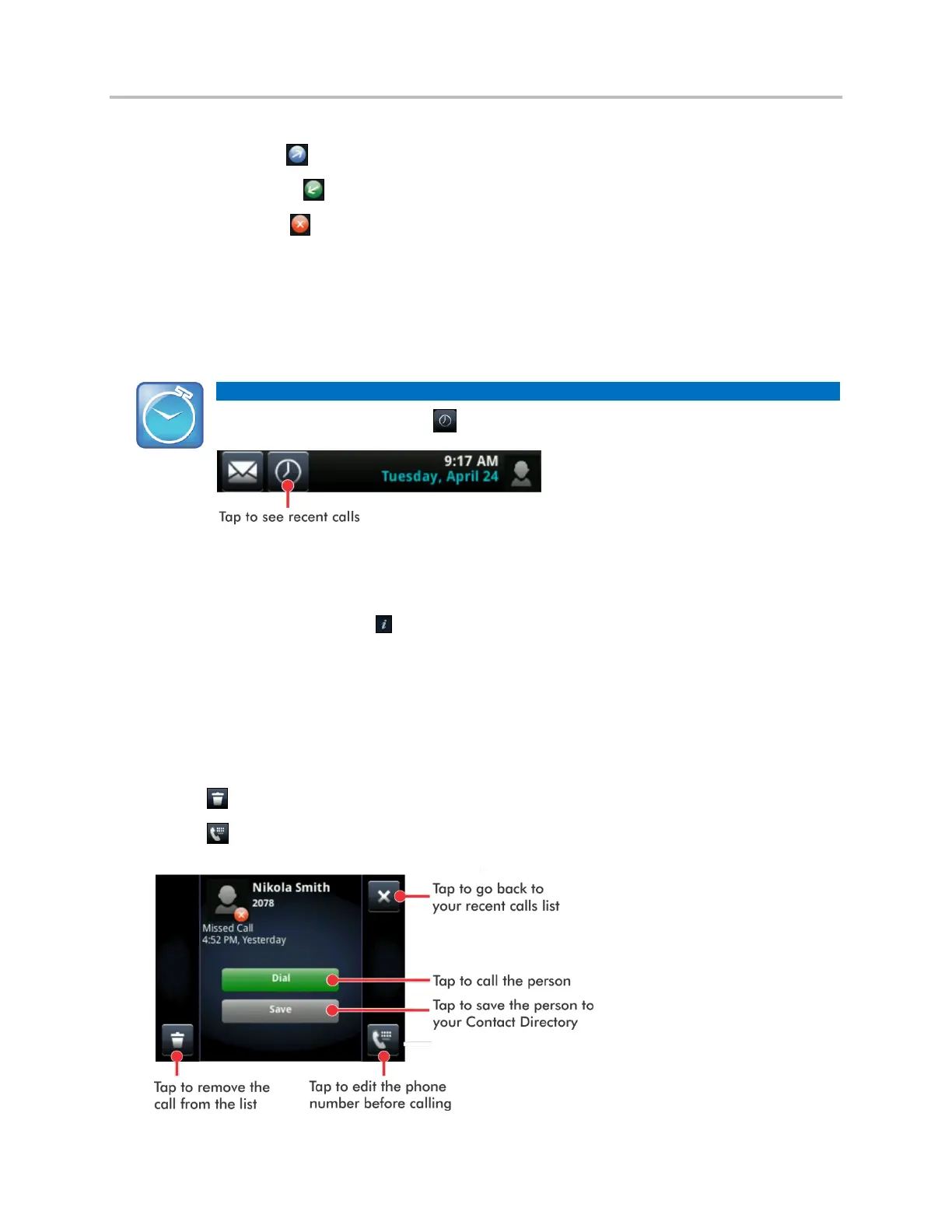 ○ Tap to delete the call from the list.