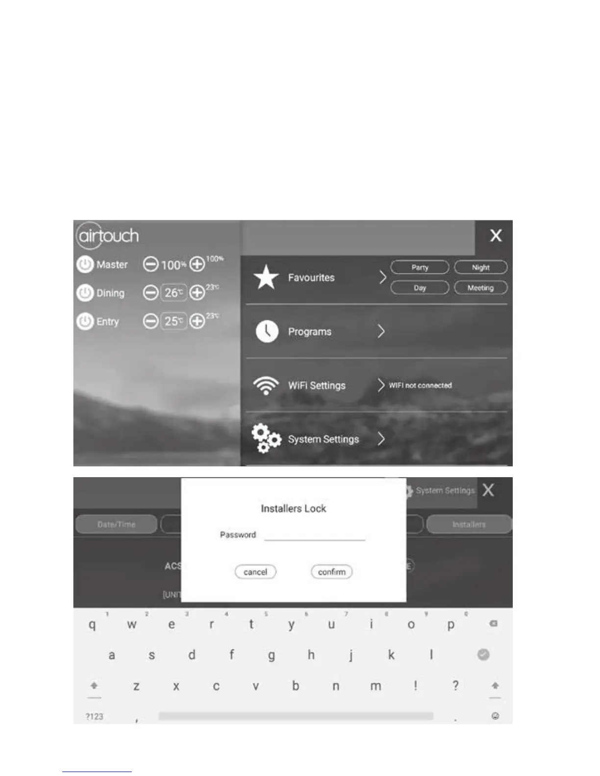 bring up password input page. After inputting the correct password, installer’s