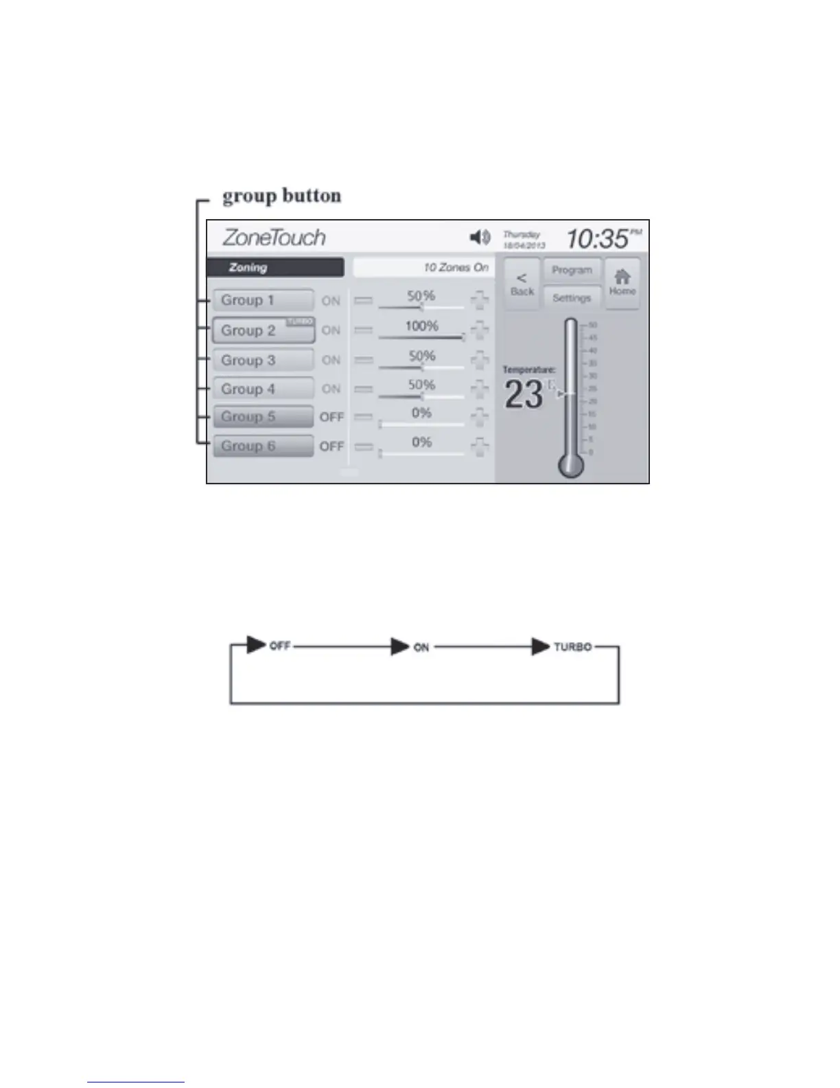 a) Onthehomescreen,touchagroupbutton(Figure2)tochangetheon/o