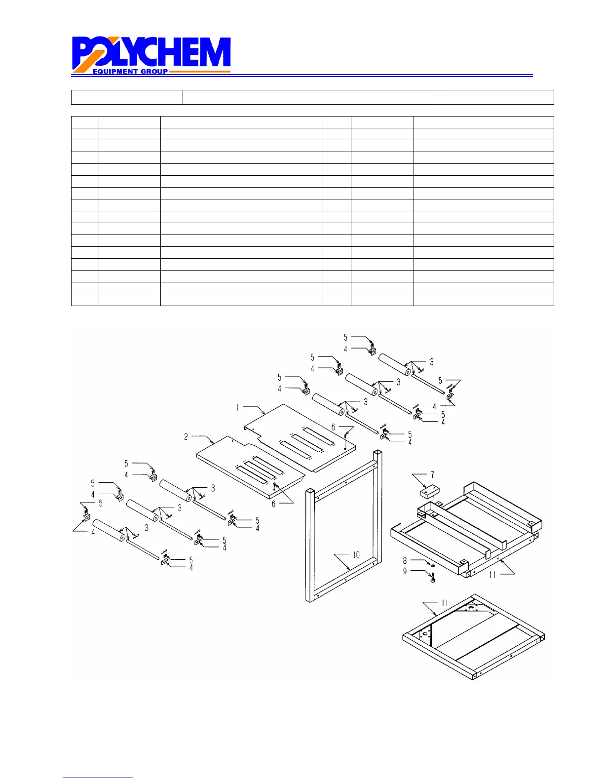 4 P00145 Roller Bracket 2 P30357 Front Support Table 1600