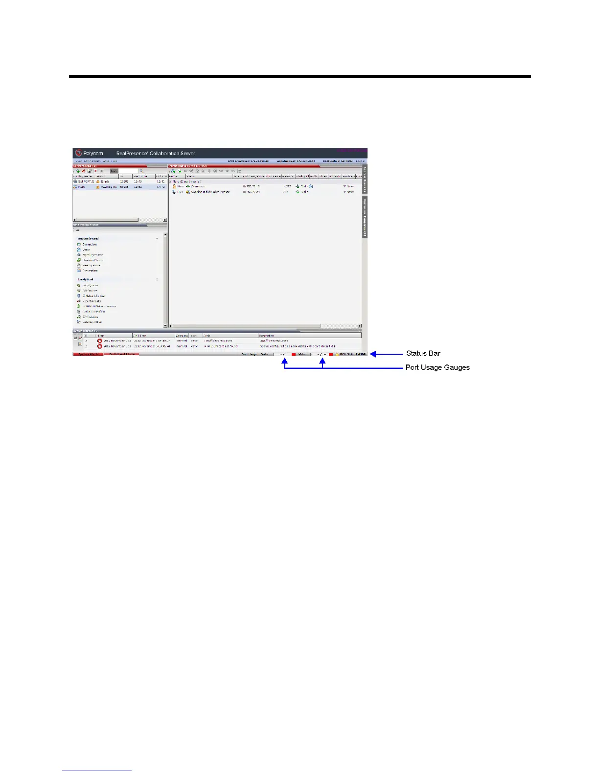 The Port Usage Gauges are displayed in the Status Bar at the bottom of the Collaboration Server Web Client