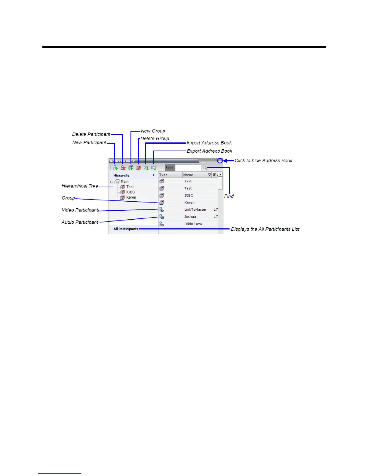 ● Hierarchical — displays a multi-level hierarchical tree of groups and participants. Double-clicking a