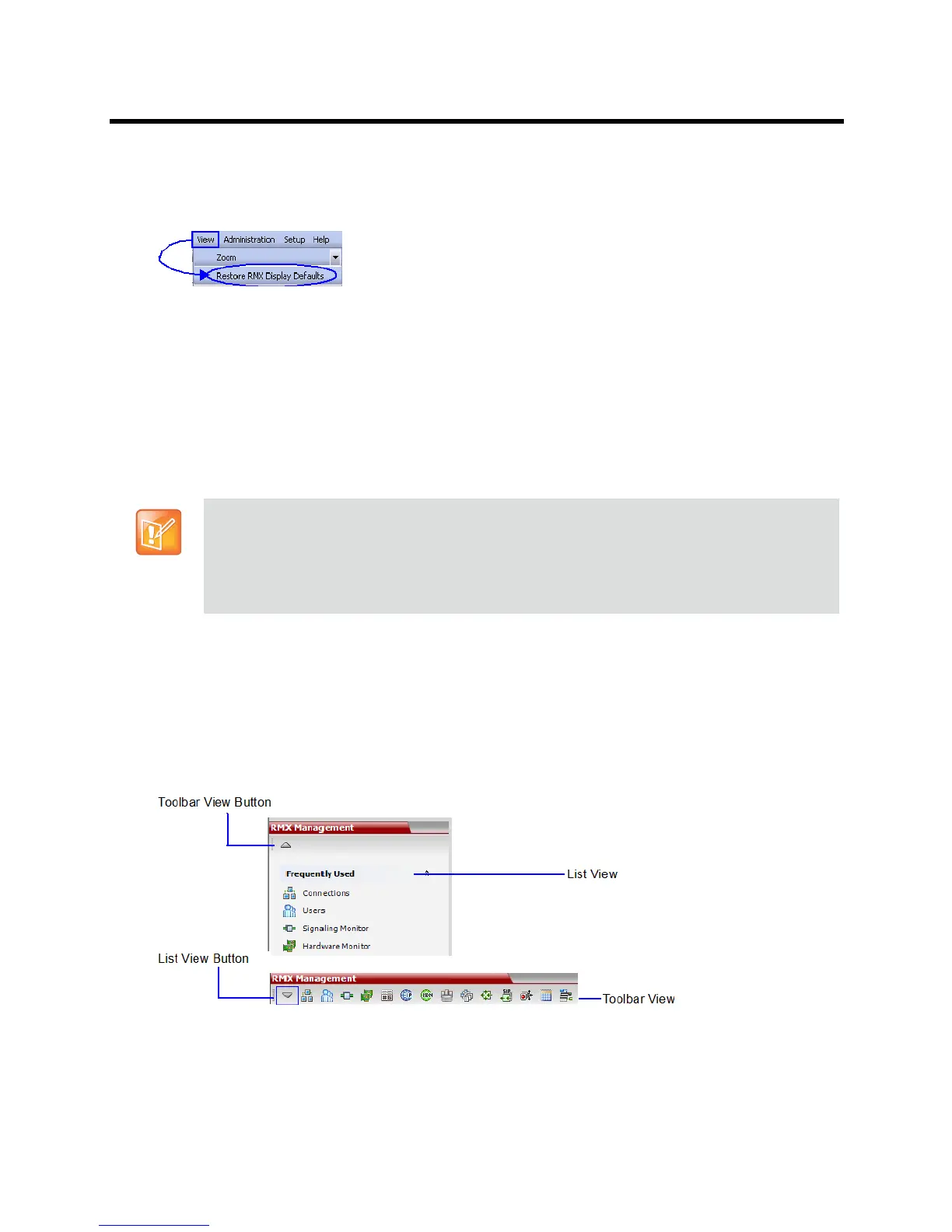 1 In the RMX Management pane, click the Toolbar View button to switch to Toolbar view.