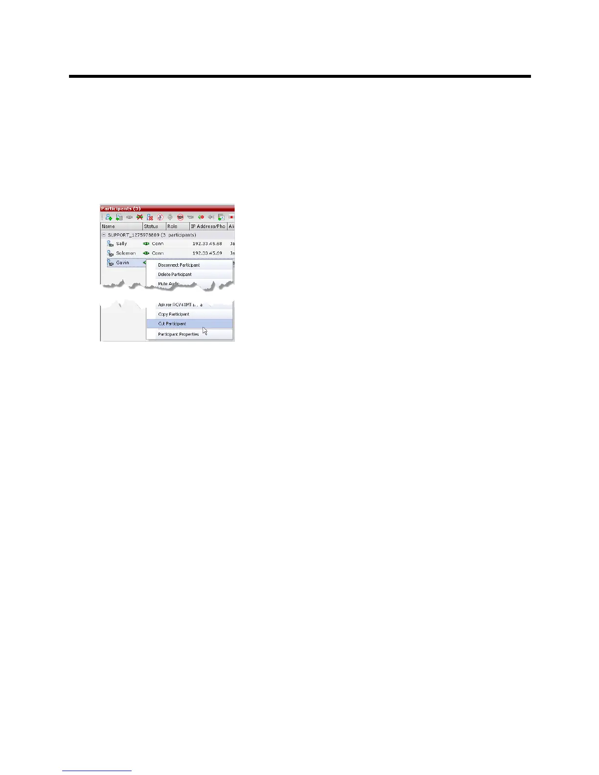 2 Right-click in the Participants List pane of the selected conference and in the drop-down menu
