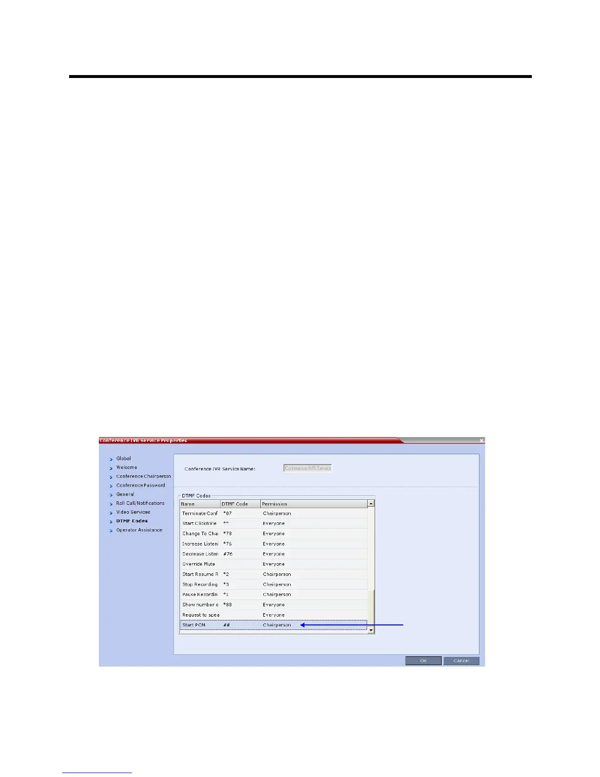 Conference IVR Service or Conference IVR Service Properties dialog box. The default DTMF Code