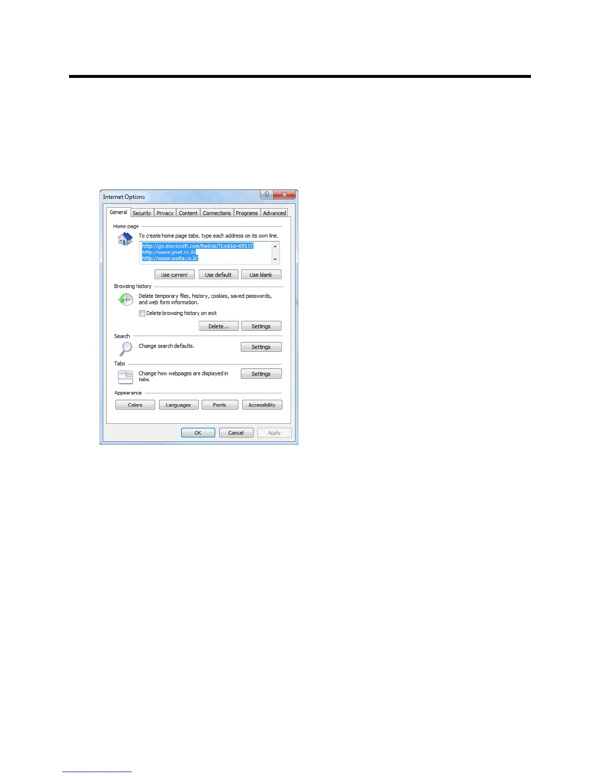 The Internet Options dialog box opens.