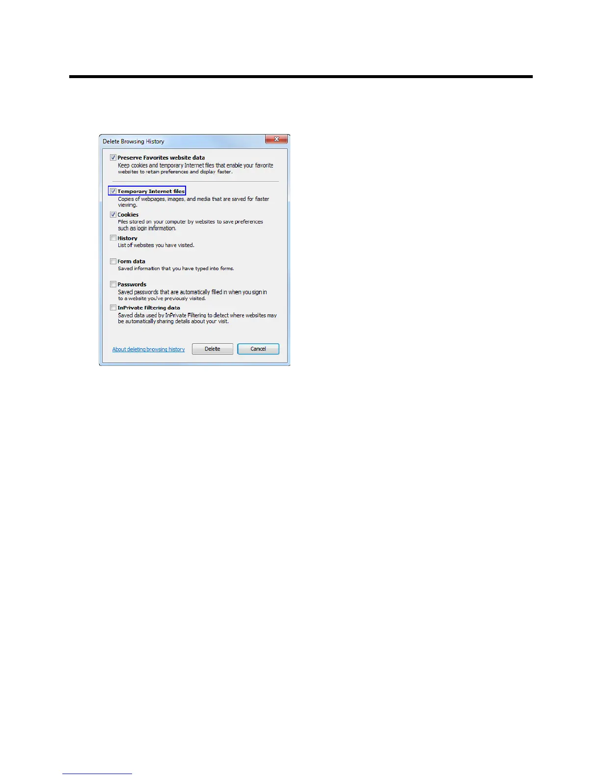 3 It is recommended to delete only the Temporary Internet files.