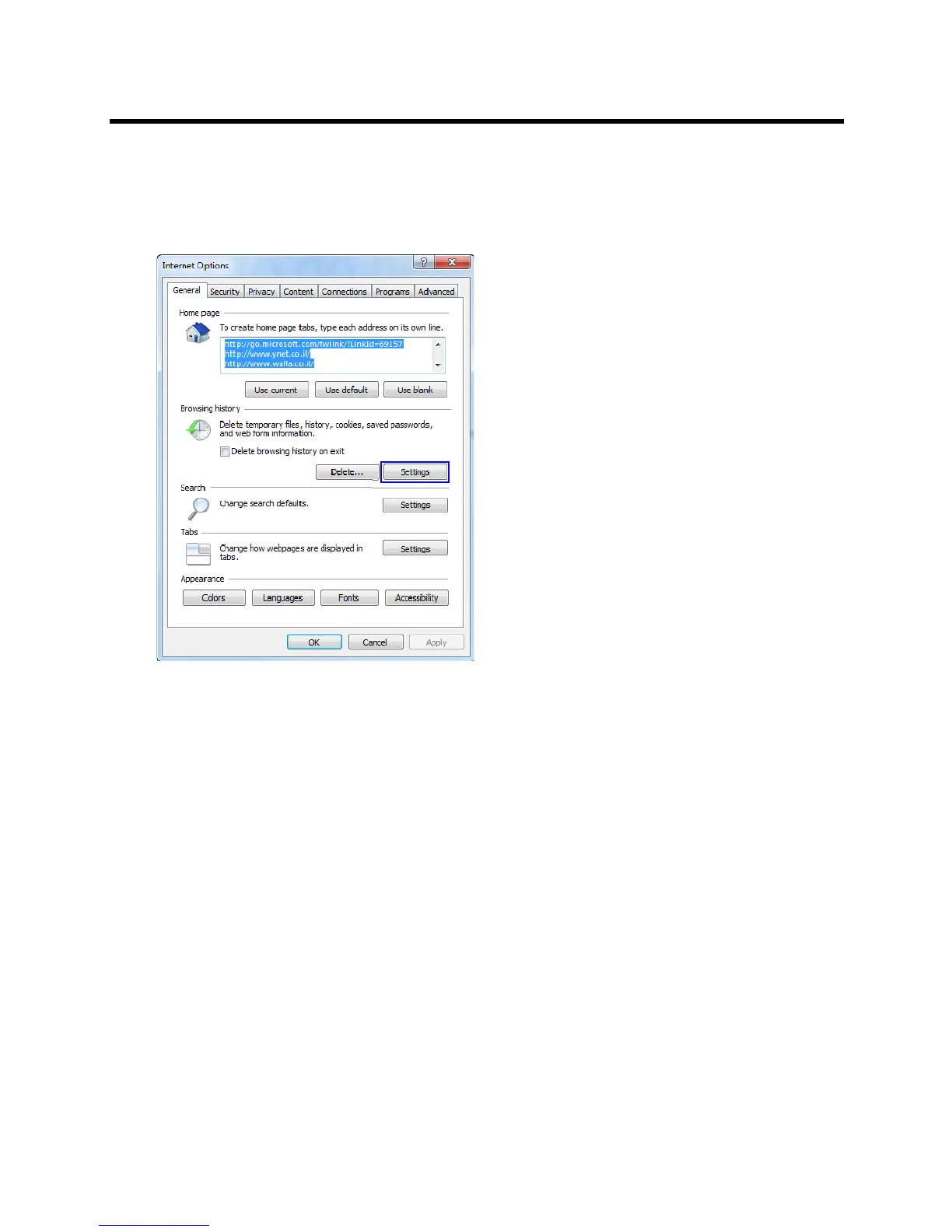 1 In the Internet Options dialog box - Browsing History pane, click the Settings button.