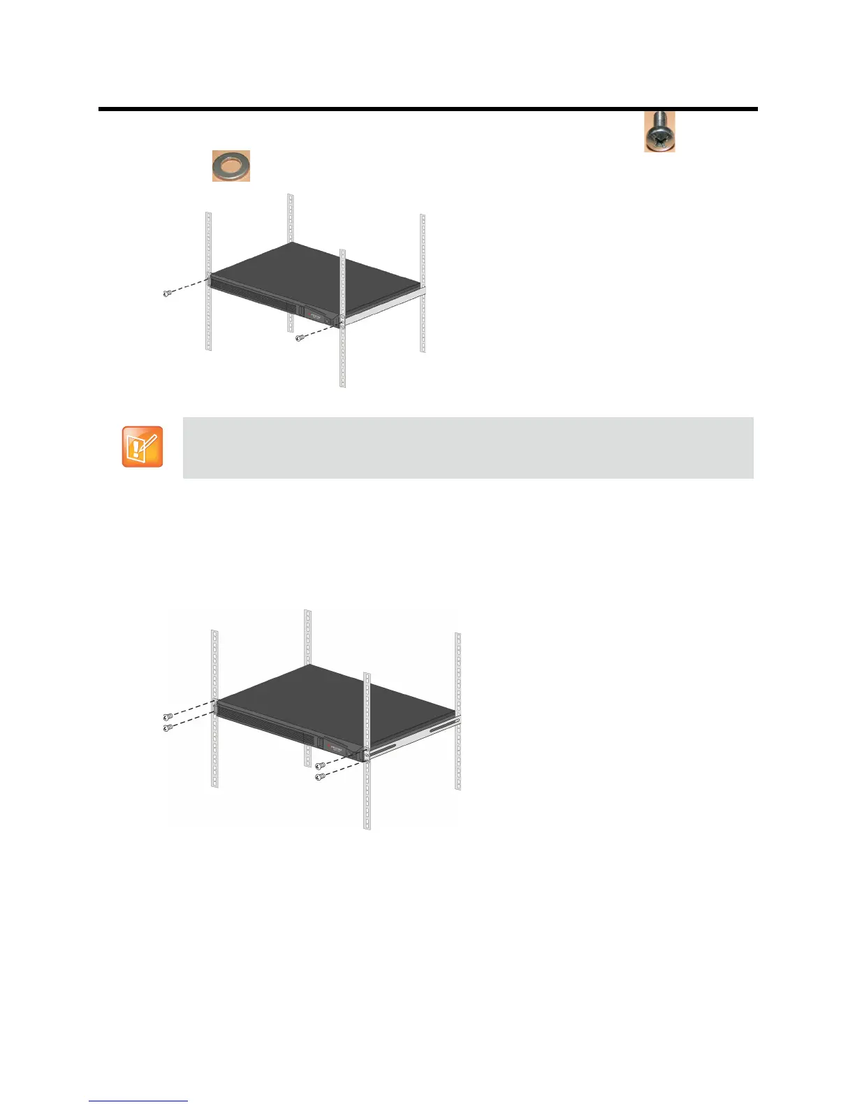 Fasten the Collaboration Server to the rack spacers using the flat head screw (8) with flat