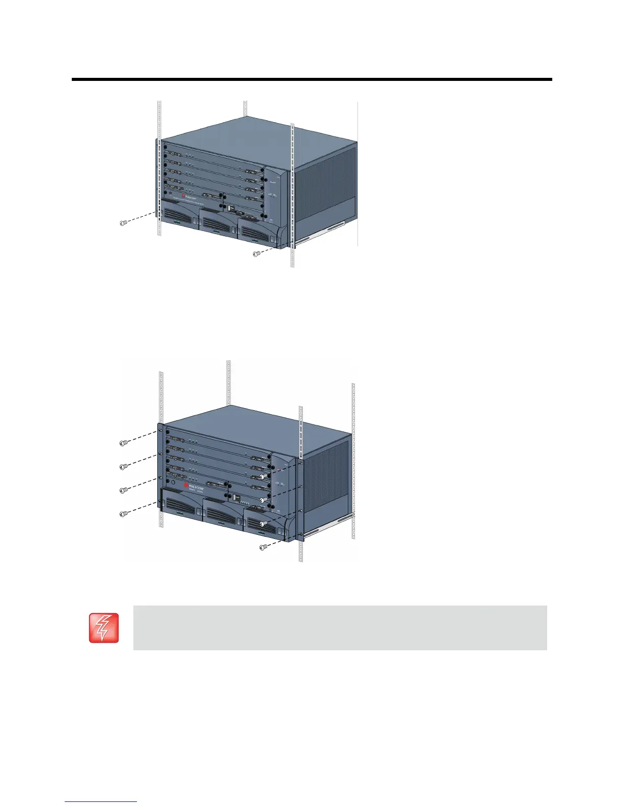 Fasten the Collaboration Server to the rack with screws through the eight holes in the