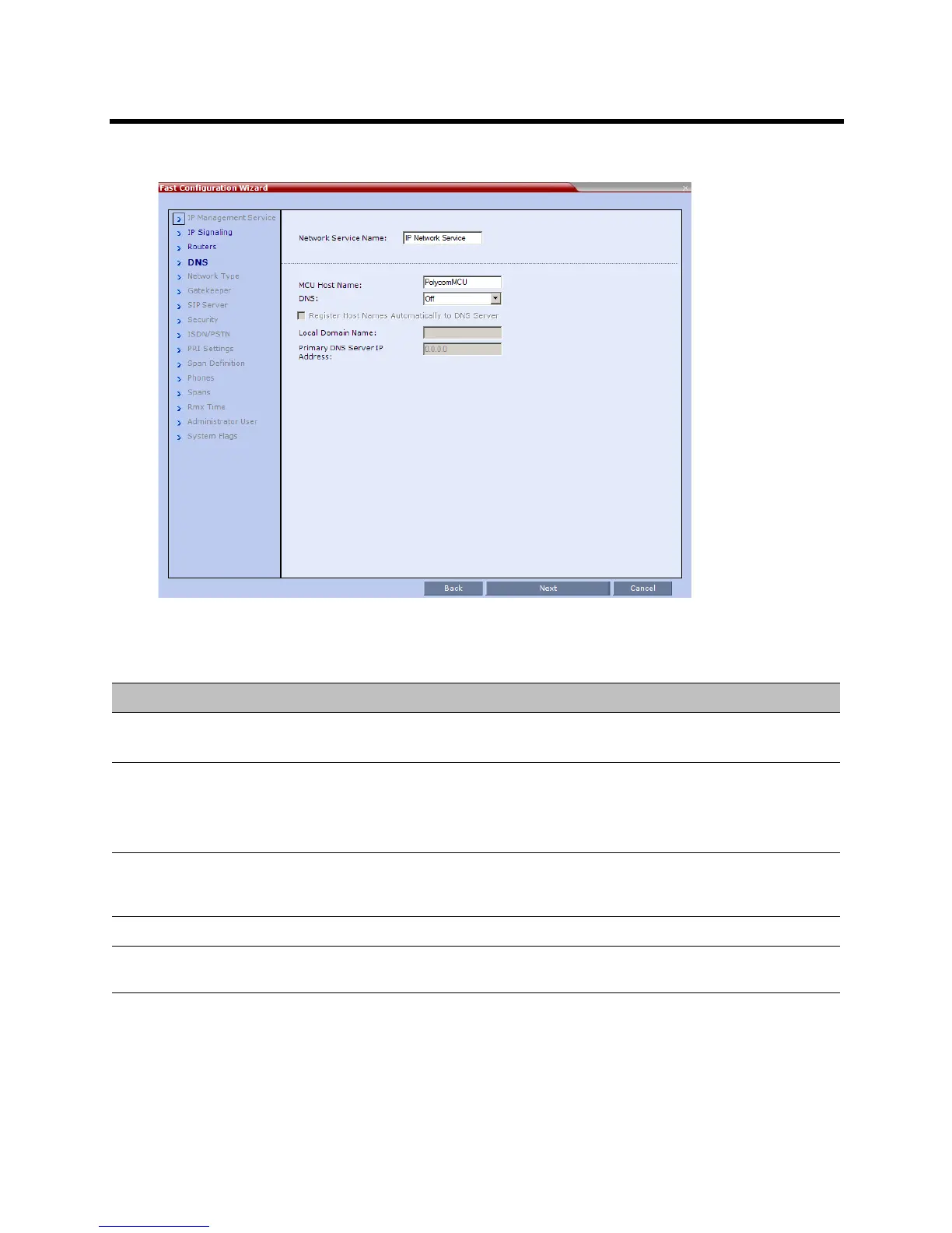 MCU Host Name Enter the name of the MCU on the network.