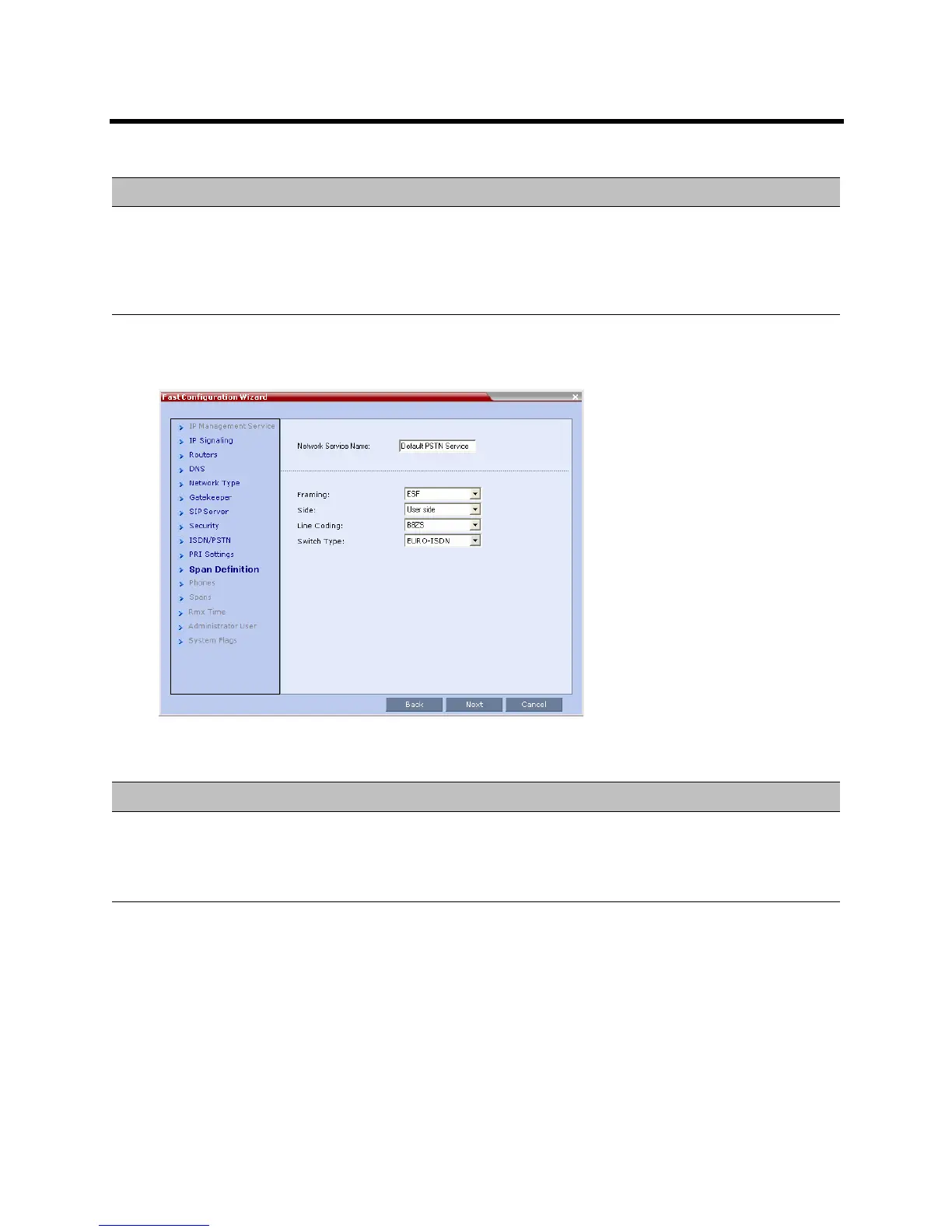 Fast Configuration Wizard – Spans Definition