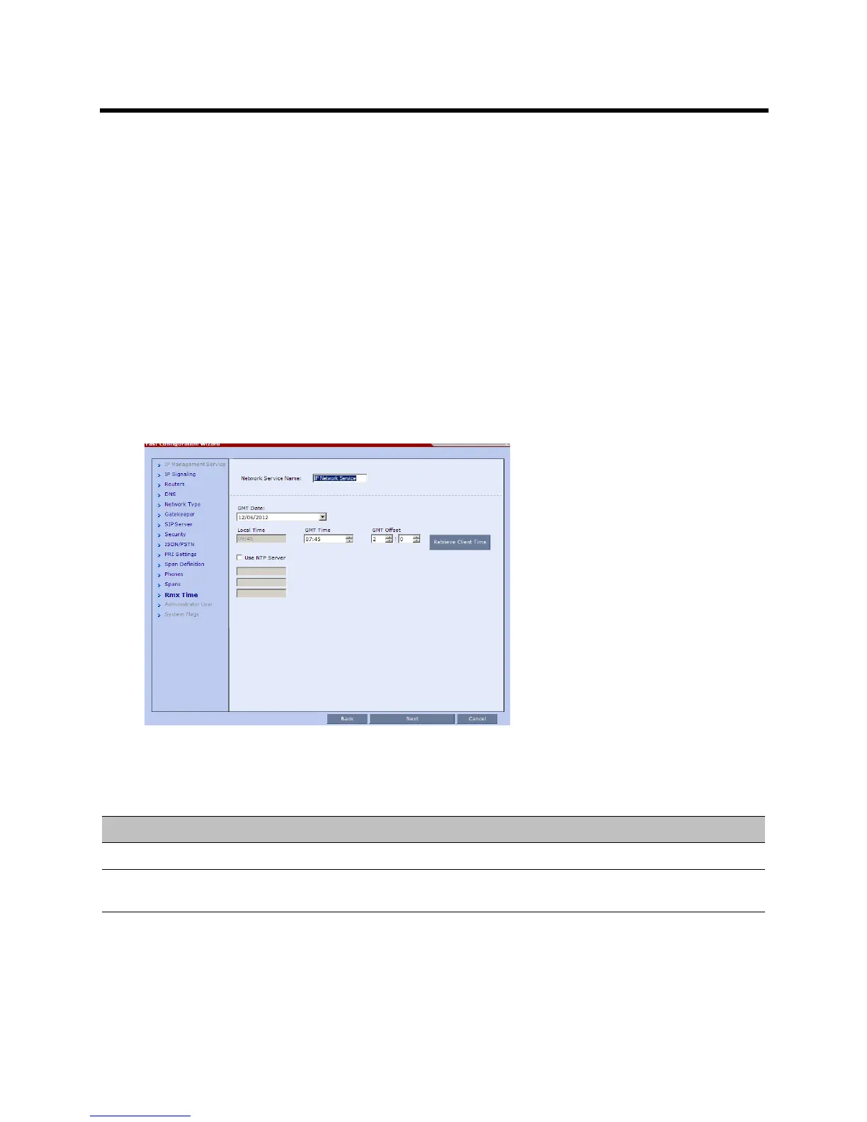 the Retrieve Client Time button, or using the NTP Servers options.