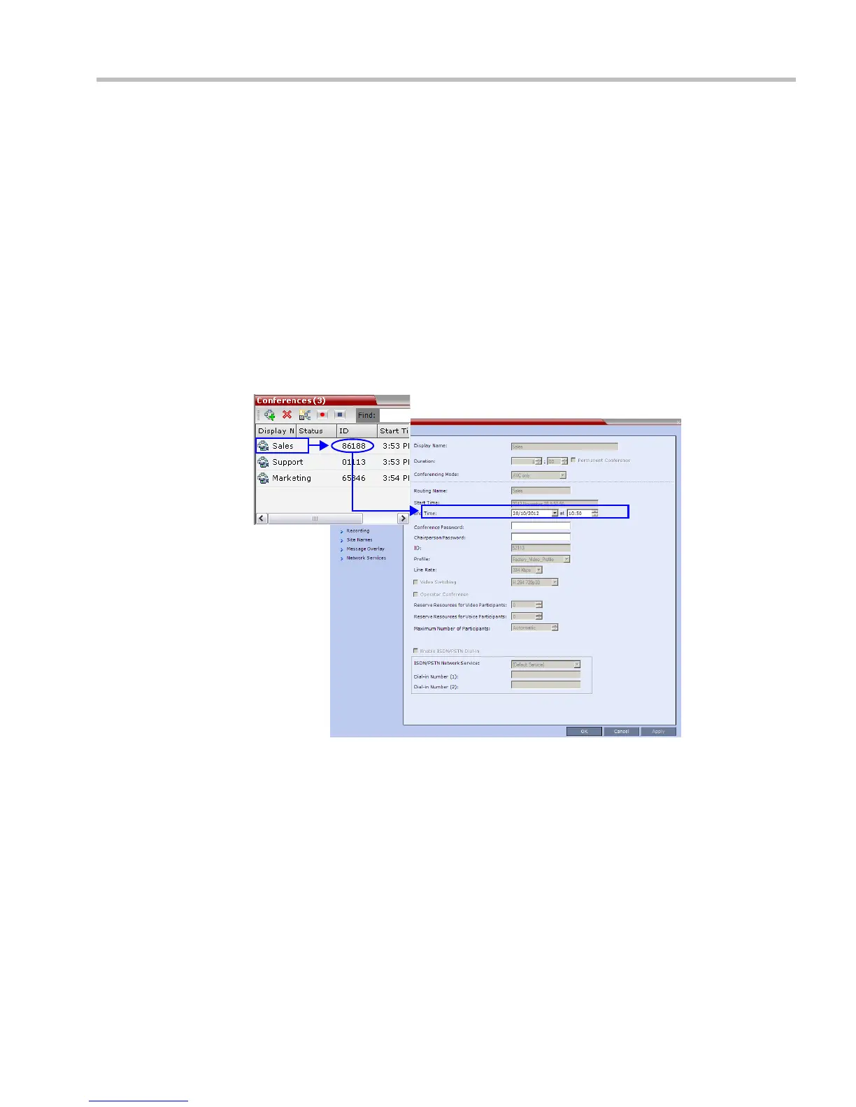 1 In the Conference List pane, double-click the conference Name.