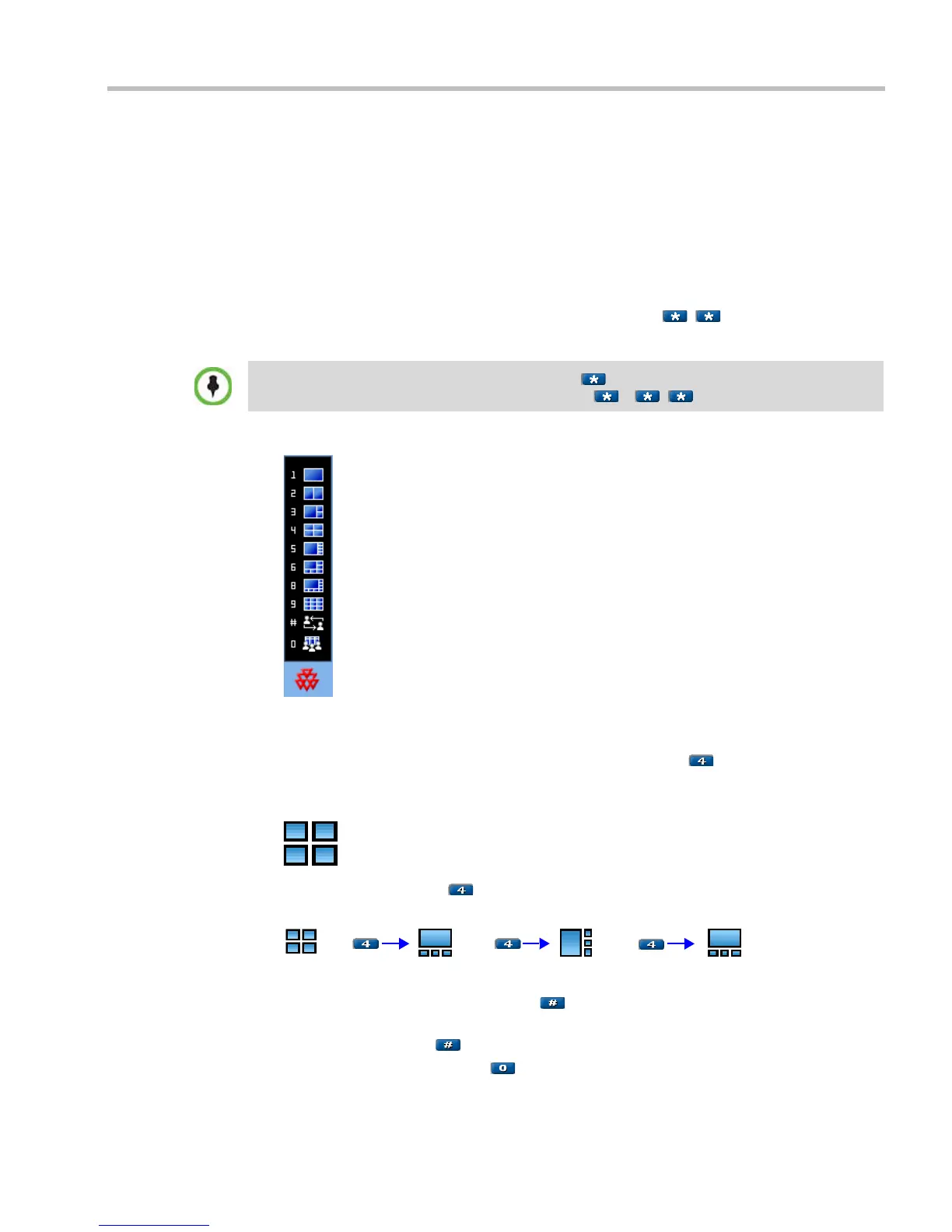 In any video layout, pressing reverts to the conference layout.