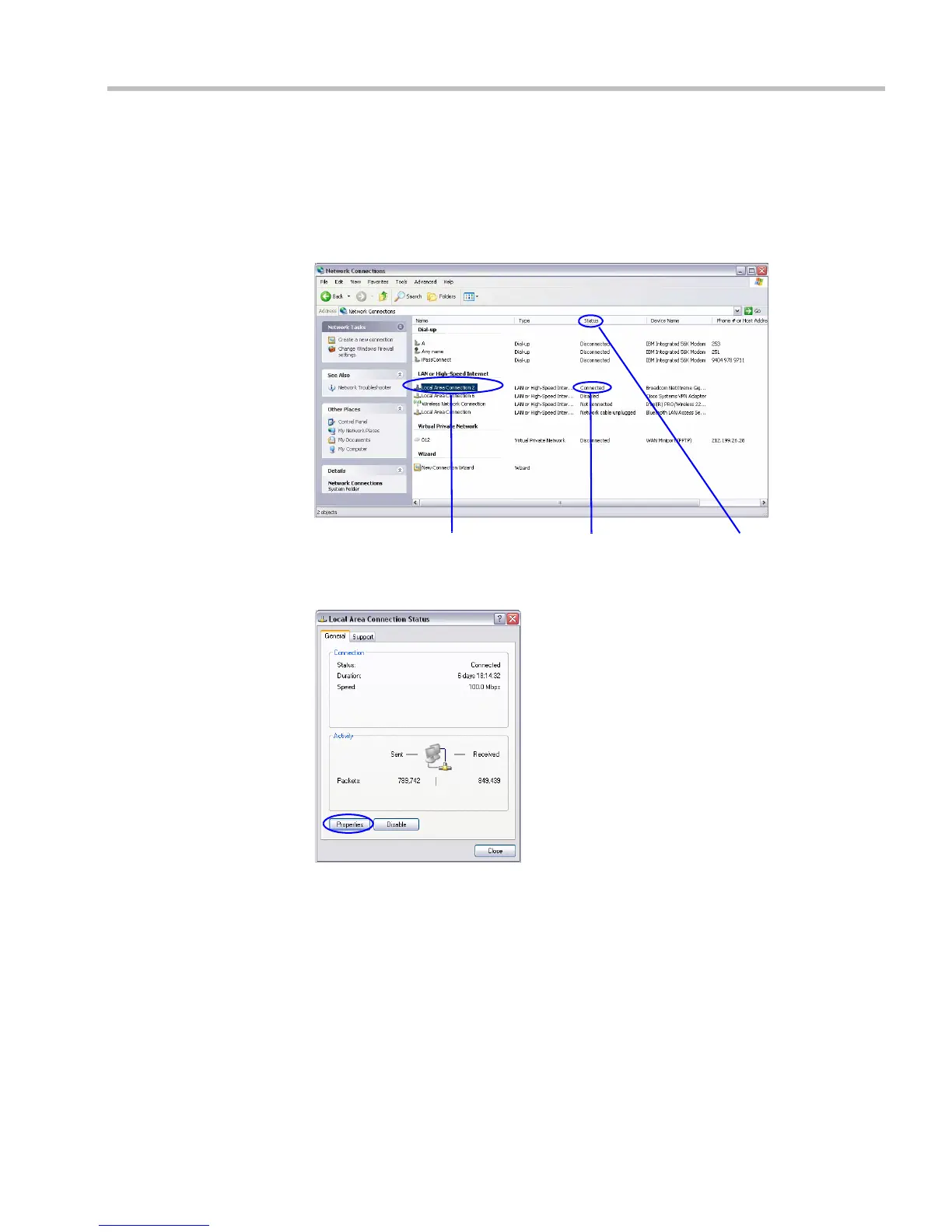 c In the Local Area Connection Status dialog box, click the Properties button.