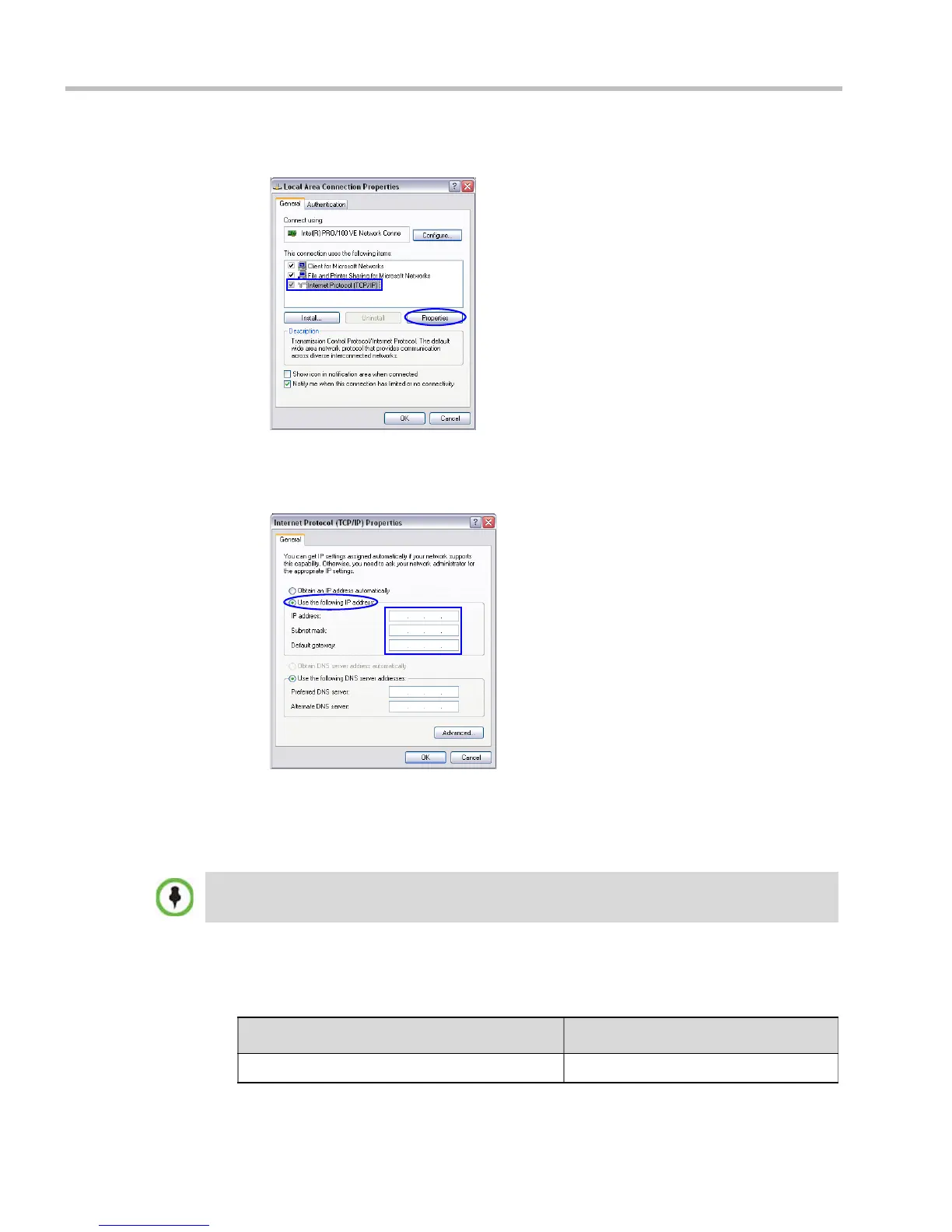 e In the Internet Protocol (TCP/IP) Properties dialog box, select Use the following IP