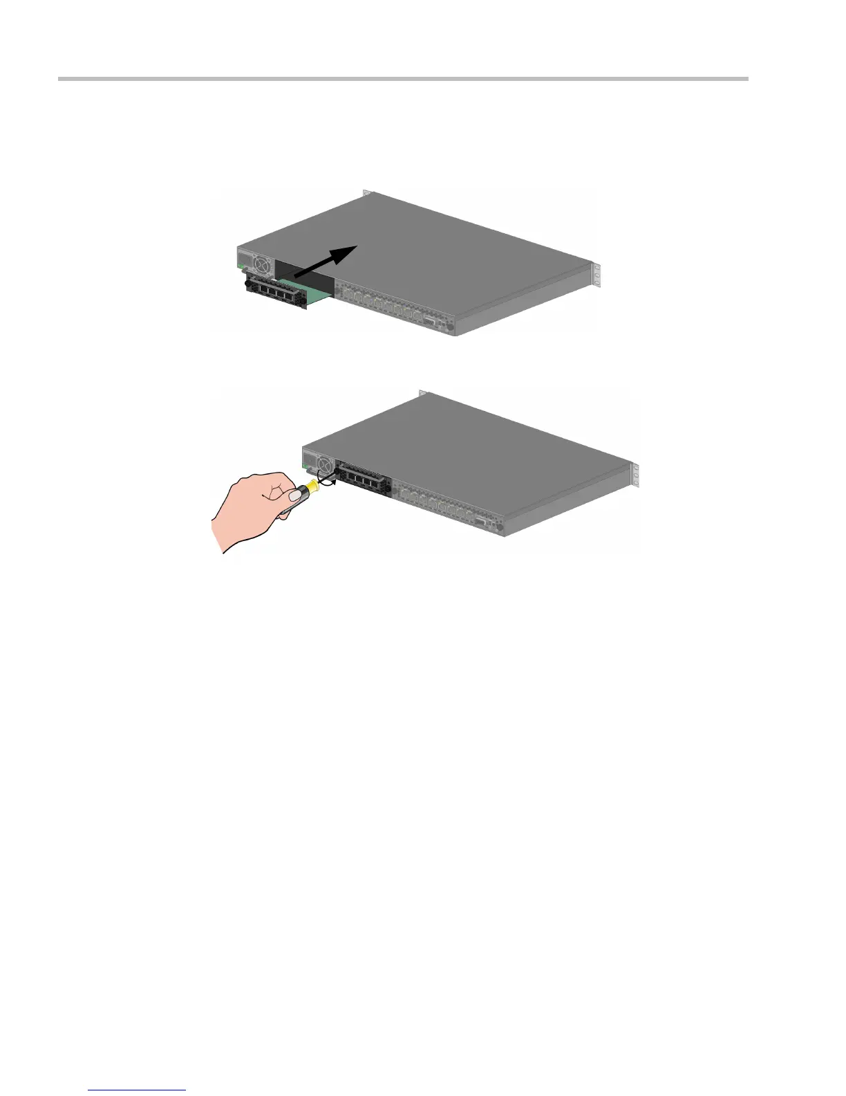 2 Insert the card into the slot and tighten the captive screws on each side of the rear panel
