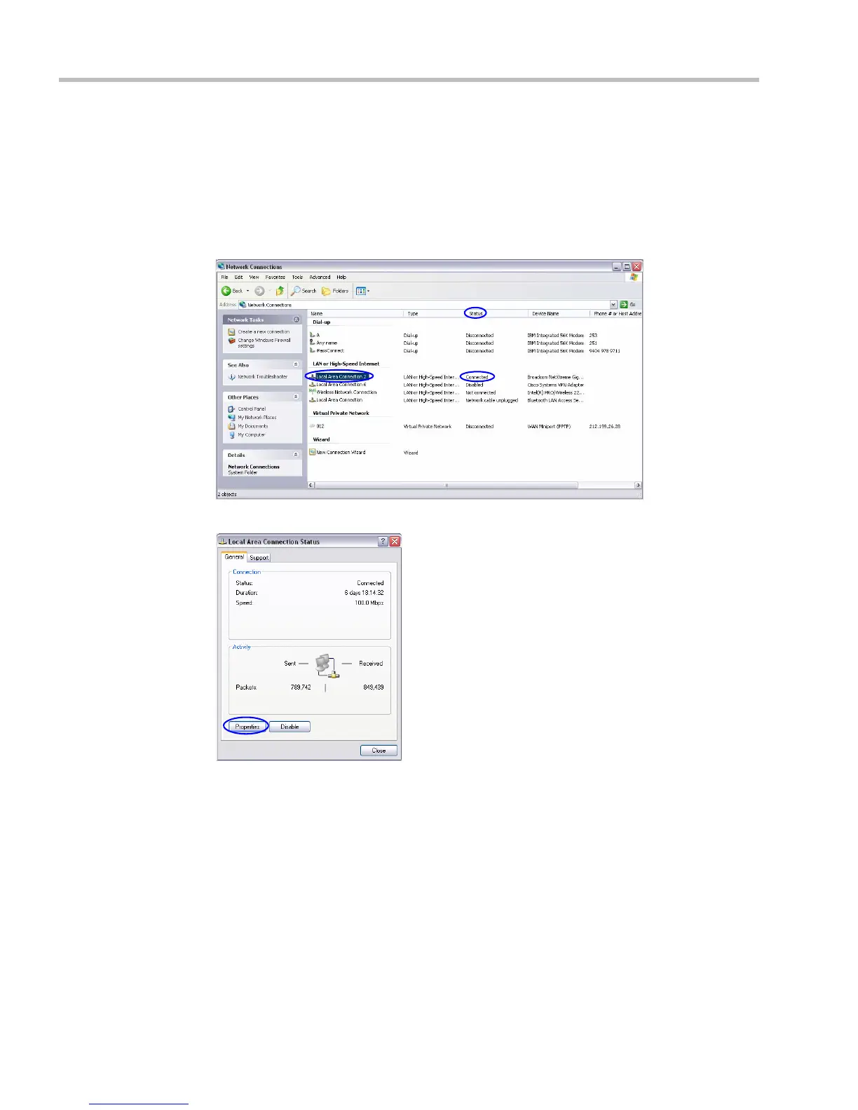 3 In the Local Area Connection Status dialog box, click the Properties button.