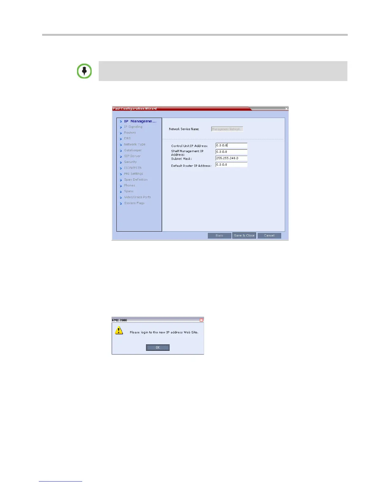 16 Enter the new Control Unit IP Address in the browser’s address line, using a workstation
