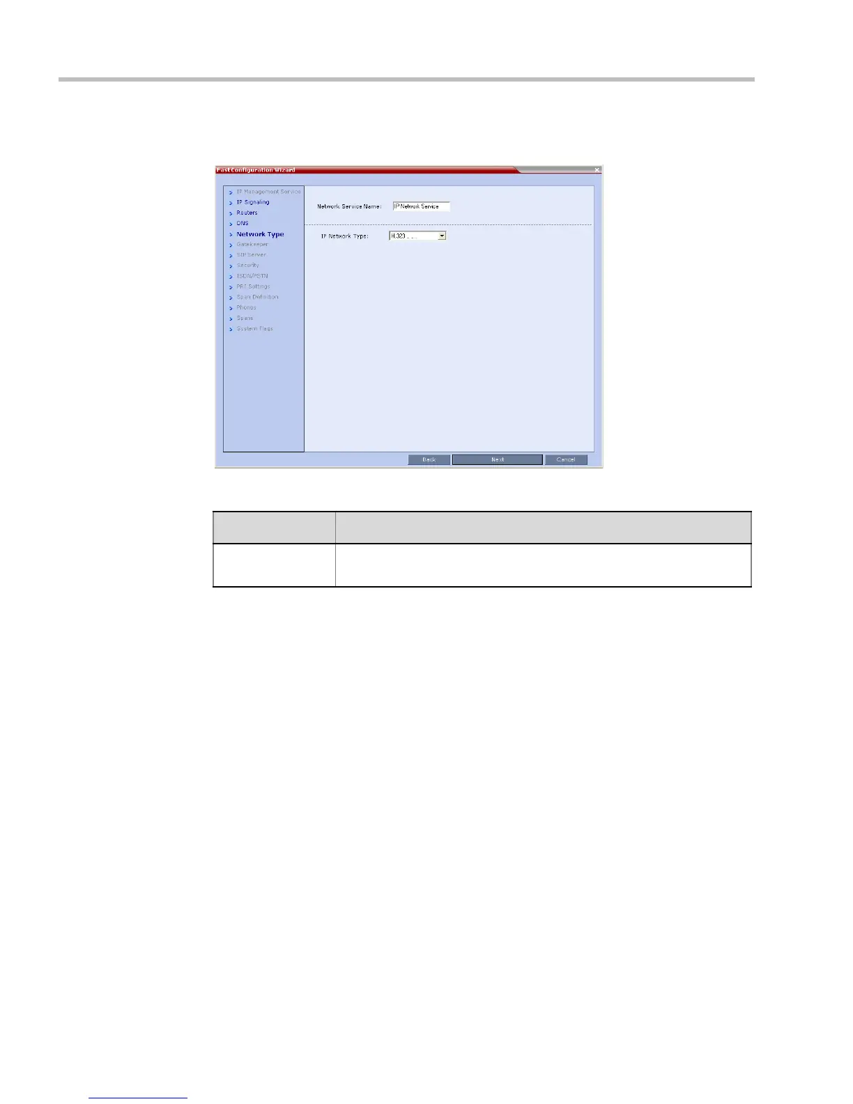 IP Network Type Select H.323 for an H.323-only Network Service.