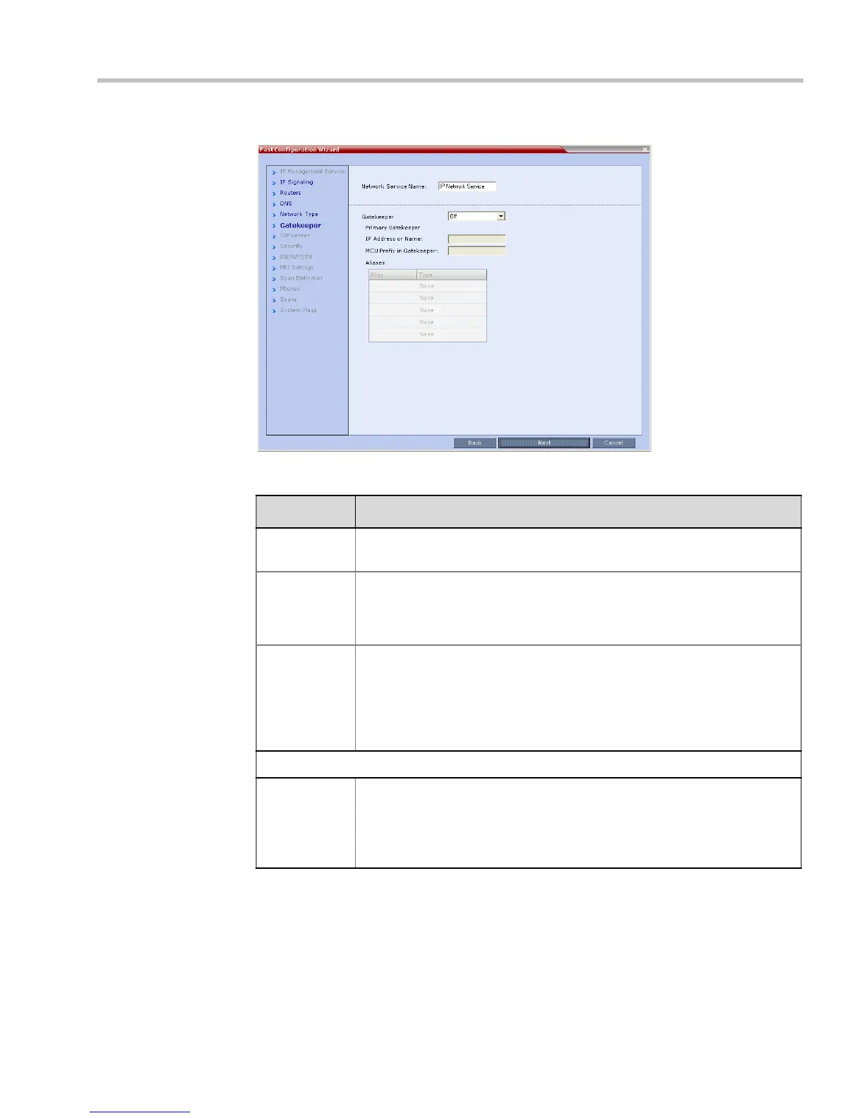 Note: When a gatekeeper is specified, at least one alias must be entered in