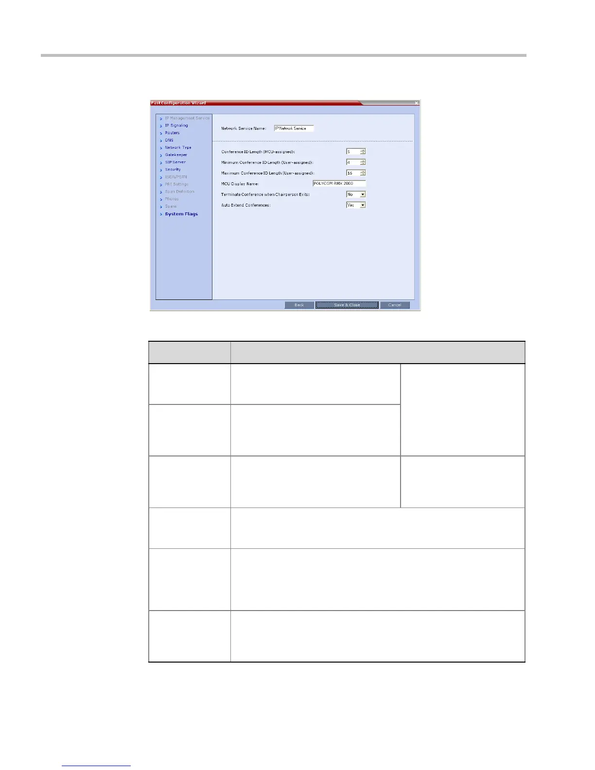 Table 1-13 Signaling Network Service – System Flags